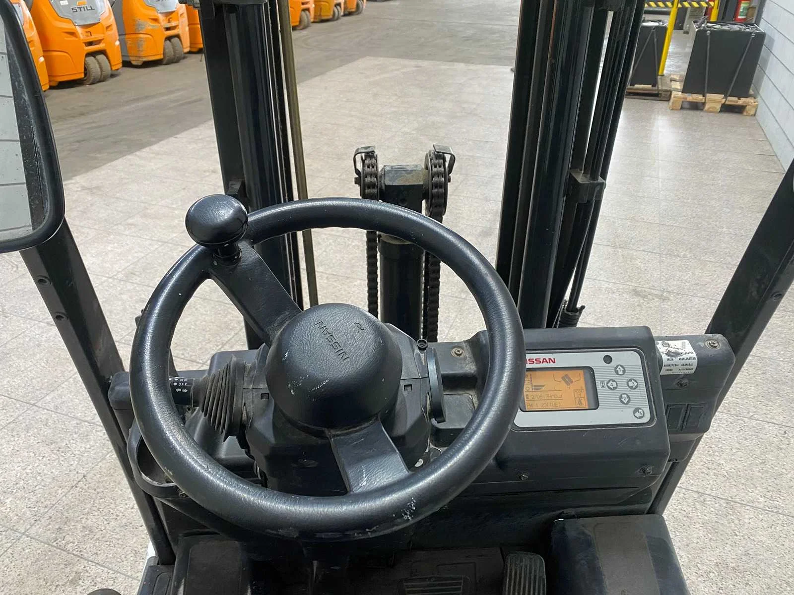 Nee Merk: Nissan Type: 1 N 1 L 15 Q Bouwjaar: 2006 Serienummer: 720803 Brandstof: elecktrische Aantal wielen: 3 Afgelezen urenstand: 2706 Accu lader: true Free-lift: true Side-shift: true Duplex mast: true Eigen gewicht: 3010kg Hefvermogen: 1500kg Hefhoogte: 3360mm Minimale doorrijhoogte: 2150mm Totale afmeting L: 1950mm Totale afmeting Breedte: 1150mm Totale afmeting Hoogte: 2150mm