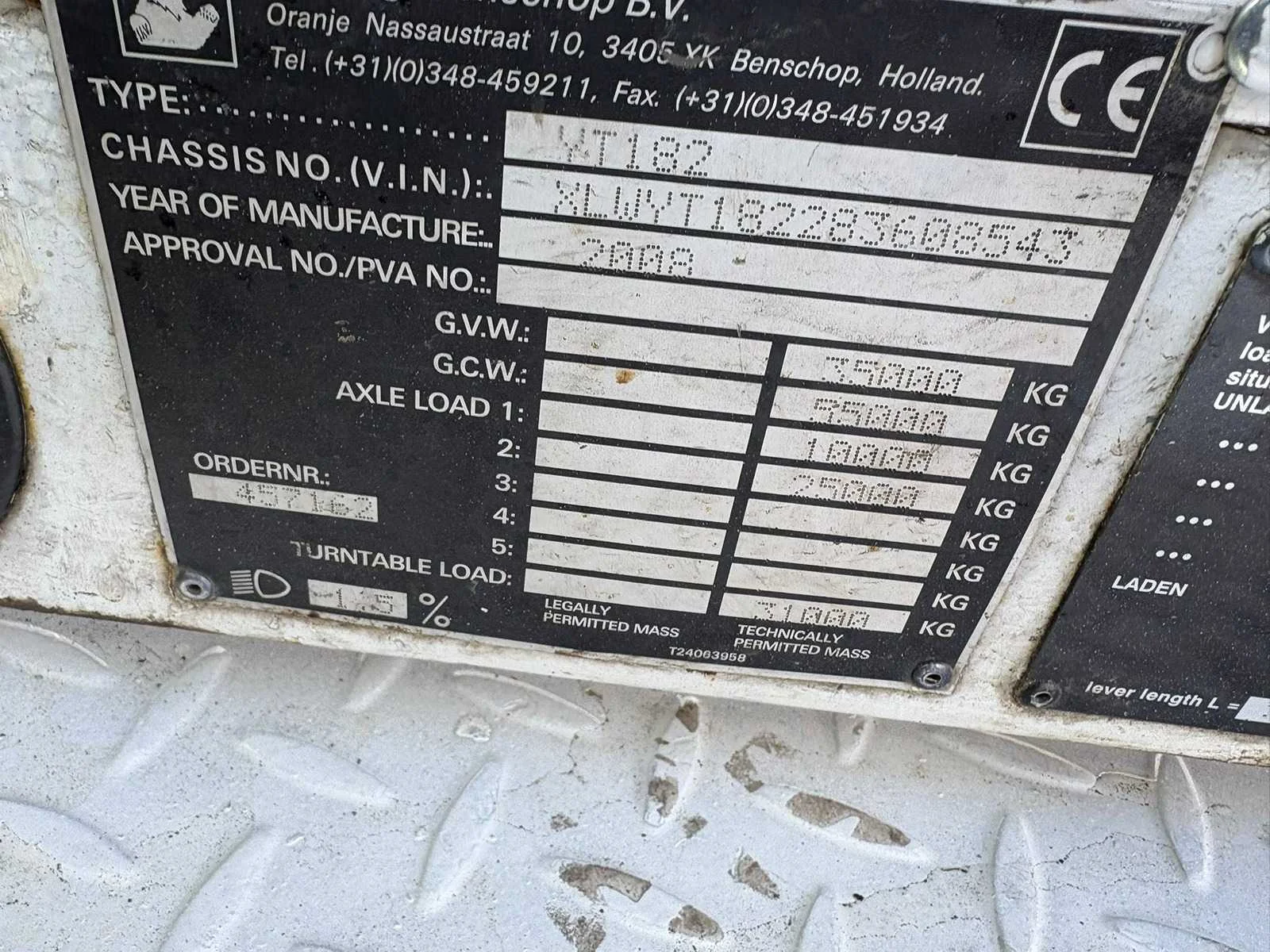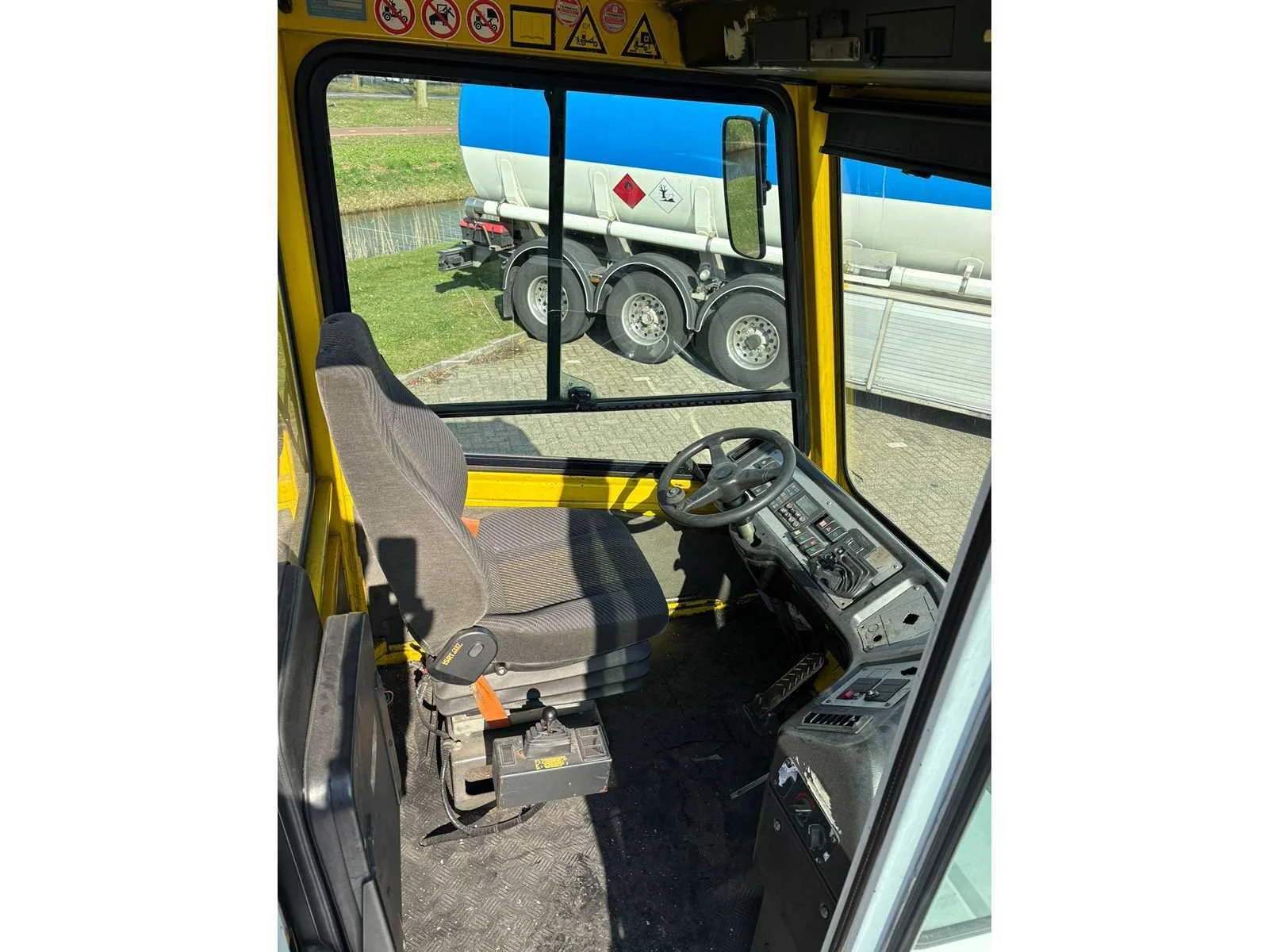 De Terberg YT182 is een terminaltrekker die veel wordt gebruikt in havens, distributiecentra en industriële omgevingen. Hier zijn de belangrijkste kenmerken van dit model: Motor & Prestaties: • Motor: Mercedes dieselmotor • Vermogen: Ongeveer 180 pk • Koppel: Circa 850-900 Nm • Emissienorm: Euro 4 • Brandstof: Diesel Transmissie: • Versnellingsbak: Automatische transmissie (Allison 3000-serie) • Aandrijving: 4x2 Constructie & Capaciteit: • Trekkracht: Geschikt voor zware trailers en opleggers • Hefbare vijfde wielplaat: Ja, voor snel aankoppelen en afkoppelen • Maximaal toelaatbaar treingewicht rond de 75 ton Cabine & Ergonomie: • Rijpositie: Links • Draaicirkel: Zeer klein voor maximale wendbaarheid • Comfort: Geveerde stoel, eenvoudig te bedienen dashboard • Veiligheid: Goede zichtbaarheid, stevige constructie Voorzien van origineel NL Kenteken Nee Kenteken: TFT-72-V Merk: Terberg Type: YT 182 Bouwjaar: 2008 APK vervaldatum: 2017-06-30 Datum eerste toelating: 2014-06-30 Datum eerste toelating (NL): 2021-04-20 Laadvermogen: 0kg Eigen gewicht: 19000kg