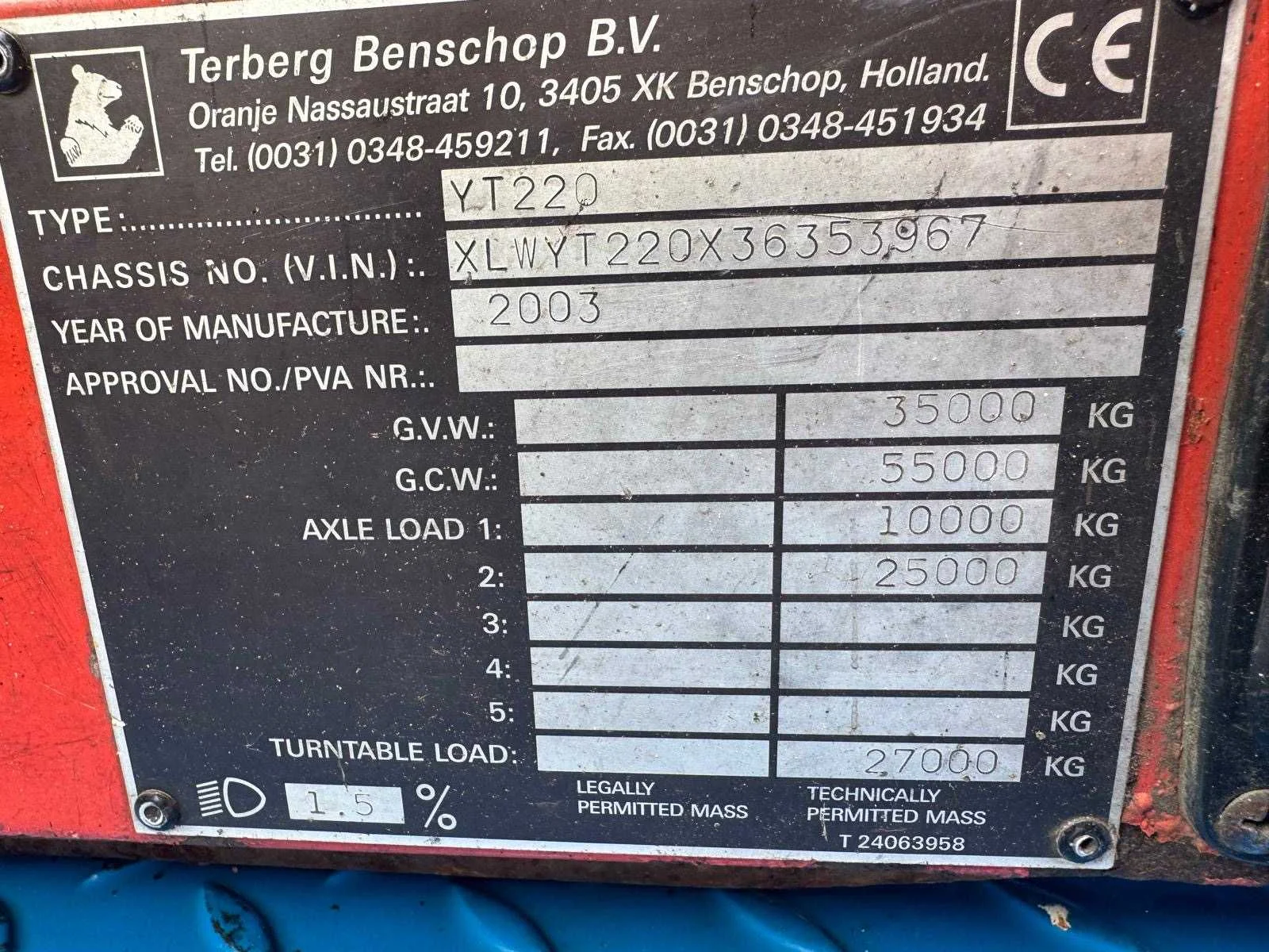 Trekgewicht zie tabel op de foto Nee Merk: Terberg Type: YT 220 Bouwjaar: 2003 Diesel: true Afgelezen urenstand: 14743