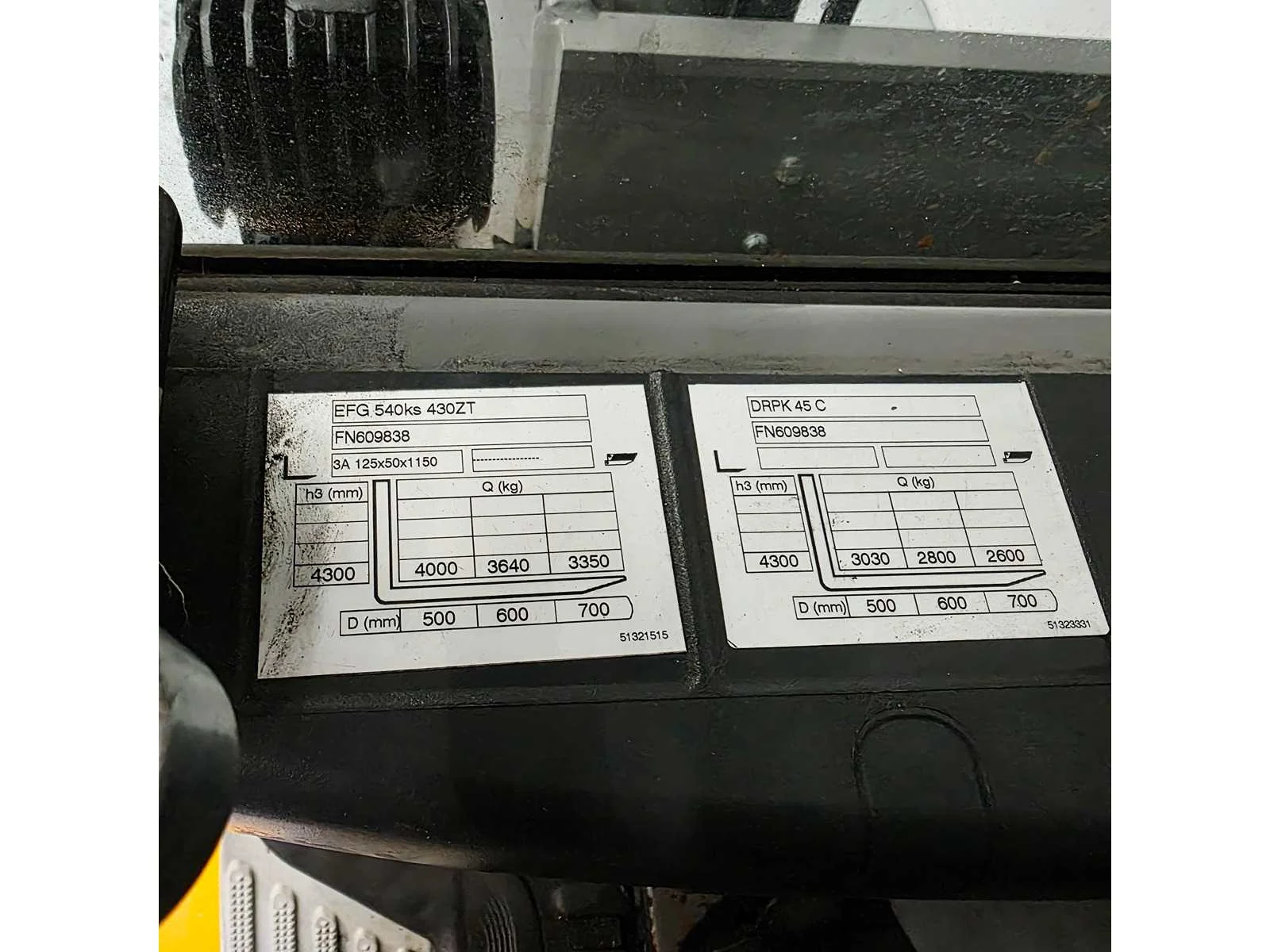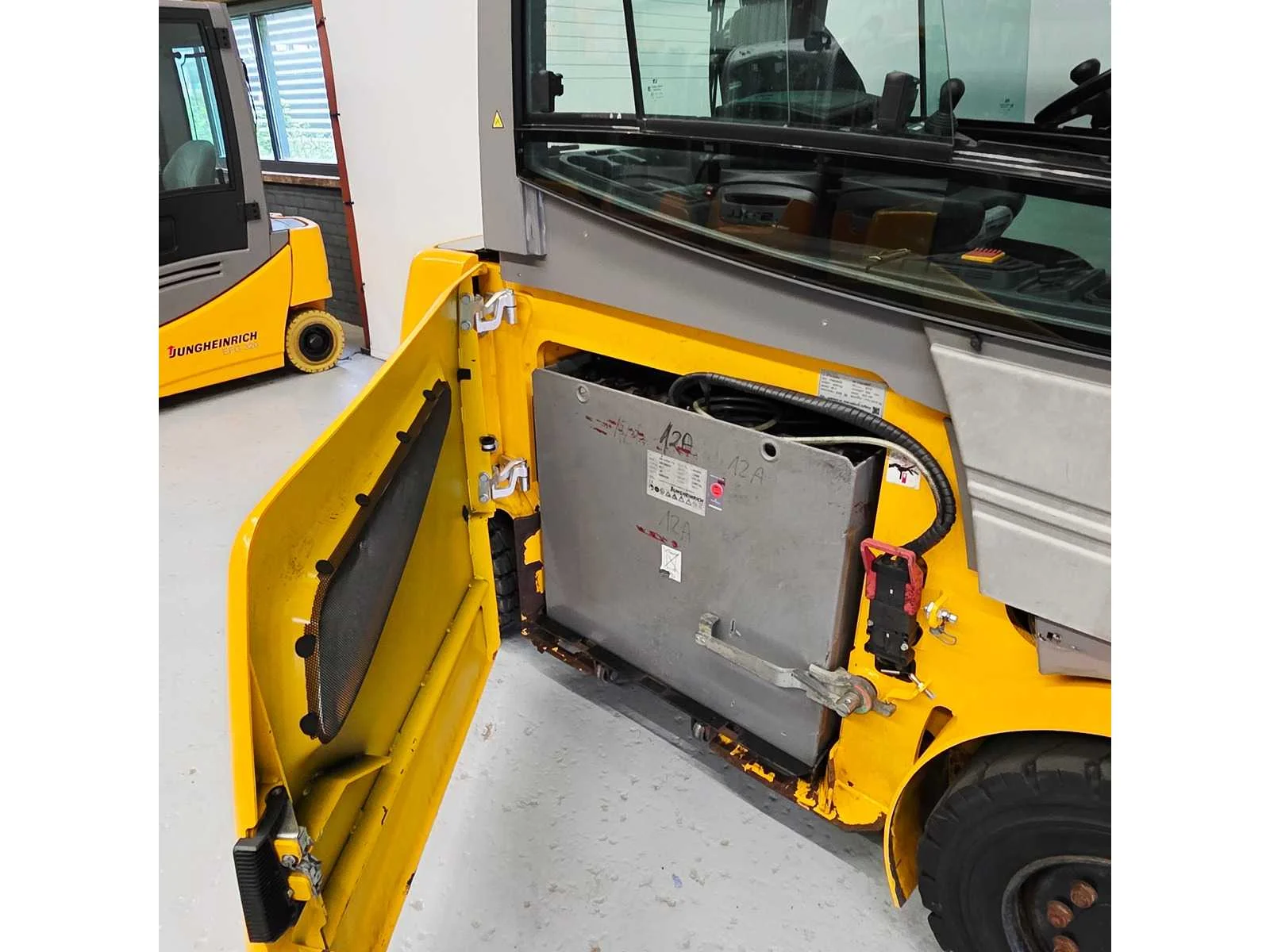 Nee Merk: Junheinrich Type: EFG 540KS Bouwjaar: 2019 Serienummer: FN609837 Brandstof: Elektrisch Aantal wielen: 4 Side-shift: true Hydraulisch verstelbare lepels: true Eigen gewicht: 7000kg Hefvermogen: 4000kg Lepellengte: 1200mm Hefhoogte: 4300mm Totale afmeting L: 4200mm Totale afmeting Breedte: 1300mm Totale afmeting Hoogte: 2900mm