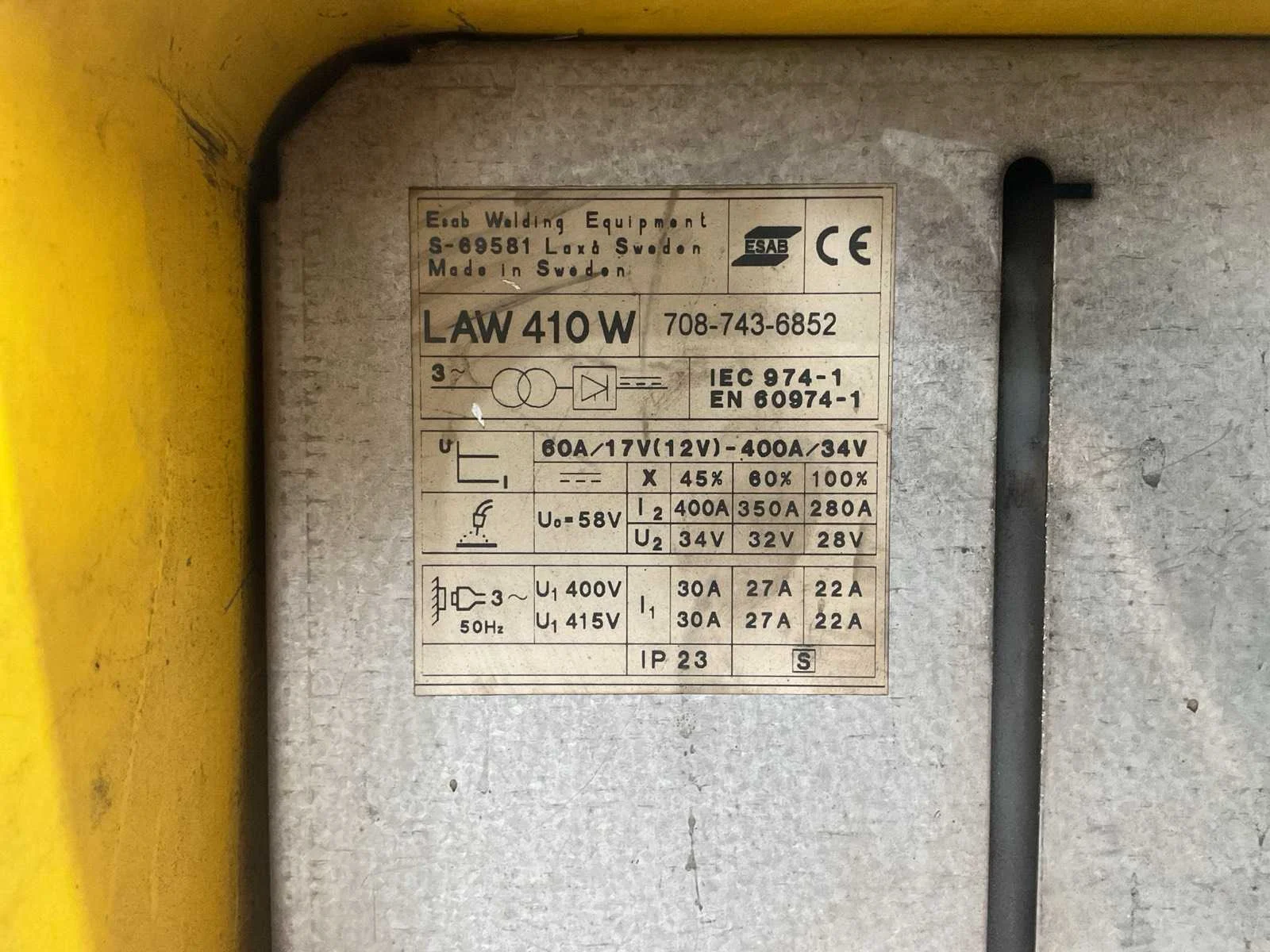 Nee Merk: ESAB Type: LAW 410W Mig type: true Ampère belasting: 400A Aansluiting: 400V