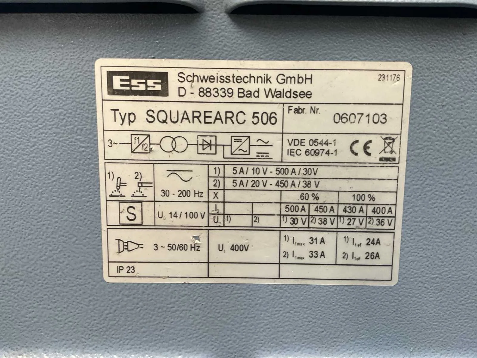 Let op! Dient te worden nagekeken Nee Merk: Ess Type: Squarearc 506 Tig type: true Electrode type: true AC/DC: true Inverter type: true Ampère belasting: 500A Digitale uitlezing: true Aansluiting: 400V