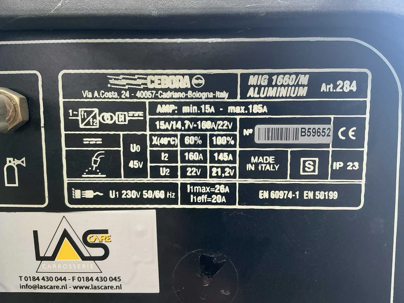 Nee Merk: Cebora Type: MIG 1660/M Mig type: true Ampère belasting: 160A Aansluiting: 230V