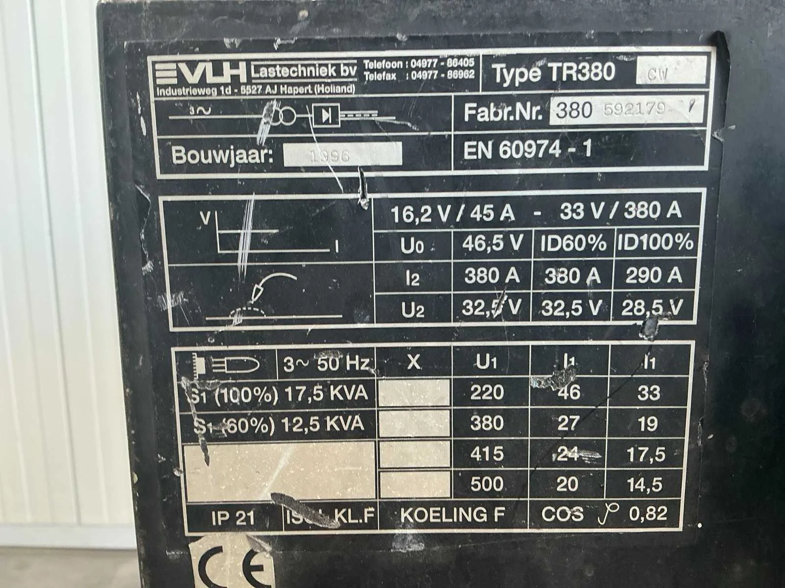 Nee Merk: VLH Type: TR380 CW Mig type: true Ampère belasting: 380A Aansluiting: 400V