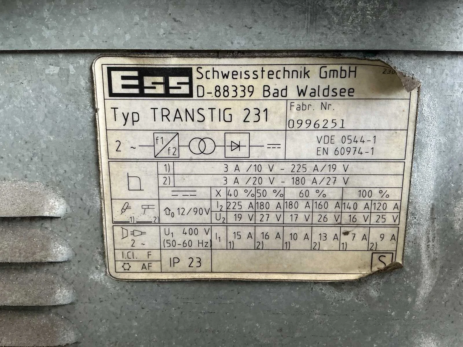 Nee Merk: ESS Type: TransTig 231 Tig type: true Electrode type: true Ampère belasting: 230A Digitale uitlezing: true Aansluiting: 400V