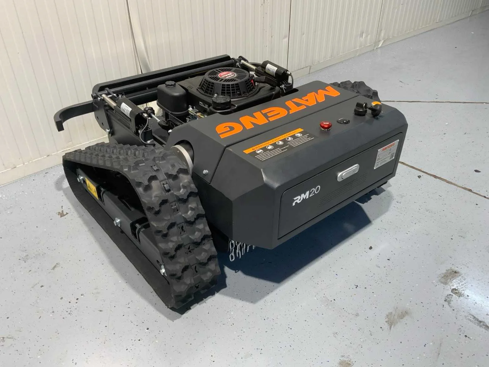 Ongebruikt Motor: 224 cc 4-takt benzinemotor, maaibreedte: 53 cm, maximaal bereik: Tot 600 meter afstand bestuurbaar. Brandstoftank: 1 liter, verbruik: ongeveer 0,7 liter per uur. Maximale hellingshoek: tot 45 graden, maximale snelheid: 3 km/u. Maaihoogte: Instelbaar tussen 3 en 12 cm Besturingssysteem: Afstand bediening via draadloze zender, met een bereik tot 600 meter. Ontwerp: Robuust en geschikt voor hellingen tot 45 graden. Gebruiksgemak: Eenvoudige bediening en instelbaarheid voor optimale maairesultaten. Veiligheid: incl. noodstop en obstakeldetectie voor veilig gebruik op steile hellingen. Een krachtige 224 cc 4-takt motor en een maaibreedte van 53 cm. Nee Merk: Mateng Type: RM20 Bouwjaar: 2025 Werkbreedte: 53cm Zelfrijdend: true Benzinemotor: true Elektrisch aangedreven: true Vermogen (pk): 9 Eigen gewicht: 152kg Totale afmeting L: 100cm Totale afmeting Breedte: 100cm Totale afmeting Hoogte: 48cm