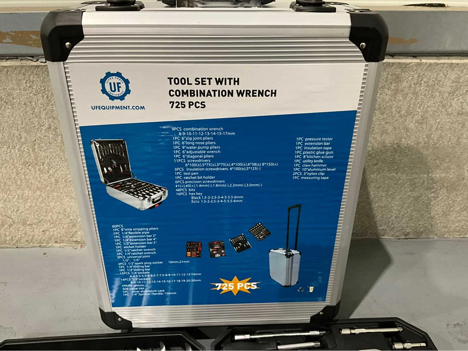 Ongebruikt in de originele verpakking Trolley incl. 725 stuks gereedschap en 2 sleutels Nee Merk: Ultra Force Equipment Bouwjaar: 2025 Aantal laden: 4 Met inhoud: true Totale afmeting L: 370mm Totale afmeting Breedte: 220mm Totale afmeting Hoogte: 530mm