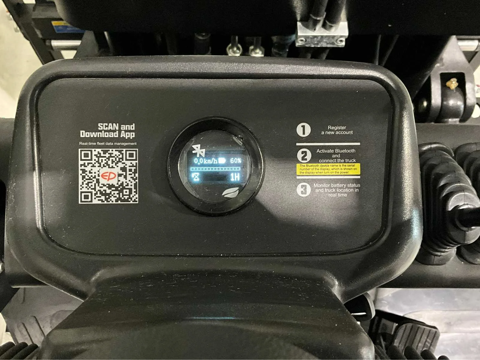 Ongebruikt , lithium accu pakket , 4e vrije hydraulische functie beschikbaar , bluetooth functie tot rij instelling , led straat verlichting , blue spot , interne lader ingebouwd. Nee Merk: EP Type: EFS 151 Bouwjaar: 2025 Aantal wielen: 4 Afgelezen urenstand: 1 Accu lader: true Free-lift: true Side-shift: true Triple mast: true Eigen gewicht: 2400kg Hefvermogen: 1500kg Lepellengte: 1200mm Hefhoogte: 4500mm Vol rubber banden: true Totale afmeting L: 2960mm Totale afmeting Breedte: 1030mm Totale afmeting Hoogte: 2030mm