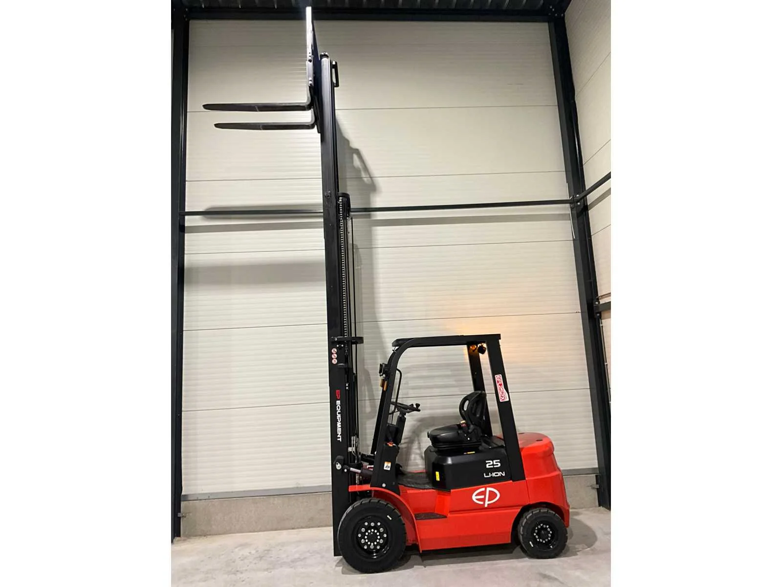 Ongebruikt , lithium accu pakket , 4e vrije hydraulische functie beschikbaar , verwisselbare accupakket , interne lader ingebouwd , bluetooth functie tot rij afstelling , led straat verlichting , blue spot Nee Merk: EP Type: EFL 252 X Bouwjaar: 2025 Aantal wielen: 4 Afgelezen urenstand: 1 Accu lader: true Free-lift: true Side-shift: true Triple mast: true Eigen gewicht: 4570kg Hefvermogen: 2500kg Lepellengte: 1200mm Hefhoogte: 4800mm Vol rubber banden: true Totale afmeting L: 3780mm Totale afmeting Breedte: 1060mm Totale afmeting Hoogte: 2210mm