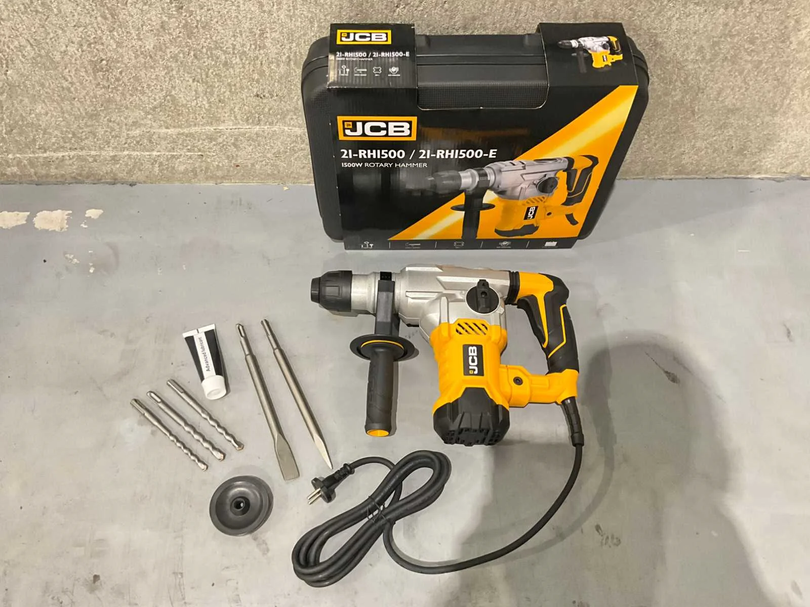 Ongebruikt , 1x JCB 1500W boorhamer, 1 x zijhandgreep, 1 x puntbeitel 14 x 250mm, 1 x platte beitel 14 x 250mm, 3 x boren 8/10/12mm x 150mm, 1 x reserve paar koolborstels, 1 x stofkap, 1 x vetbuis, 1 x moersleutel Nee Merk: JCB Type: 21-RH1500W Bouwjaar: 2025 Vermogen: 1500W Gewicht: 5