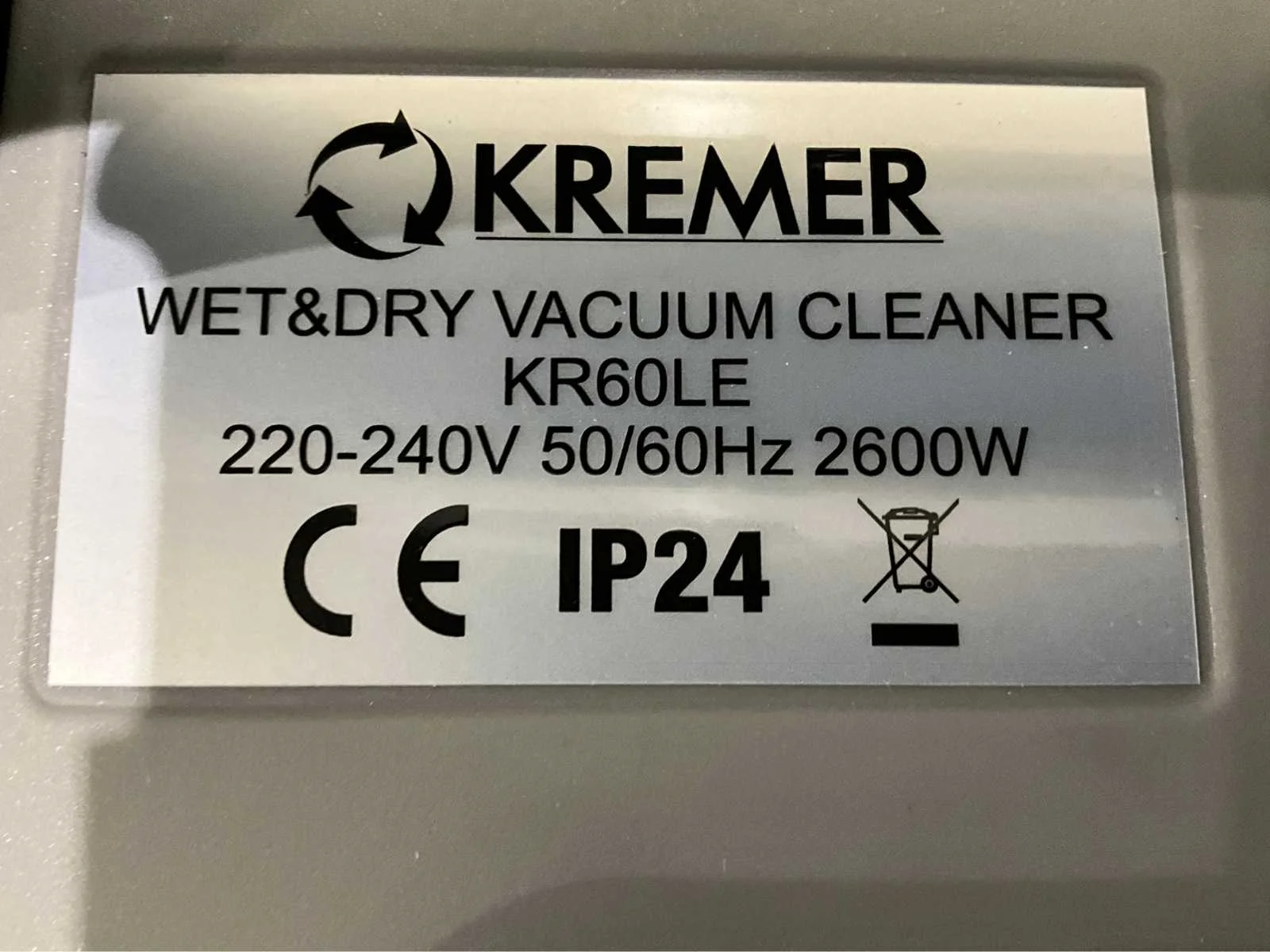 Ongebruikt , inhoudt 60 liter Nee Merk: Kremer Type: KR60L-3 grijs Bouwjaar: 2025 Vermogen: 3400W Nat/droog zuiger: true Stopcontact: true Aansluiting: 230V