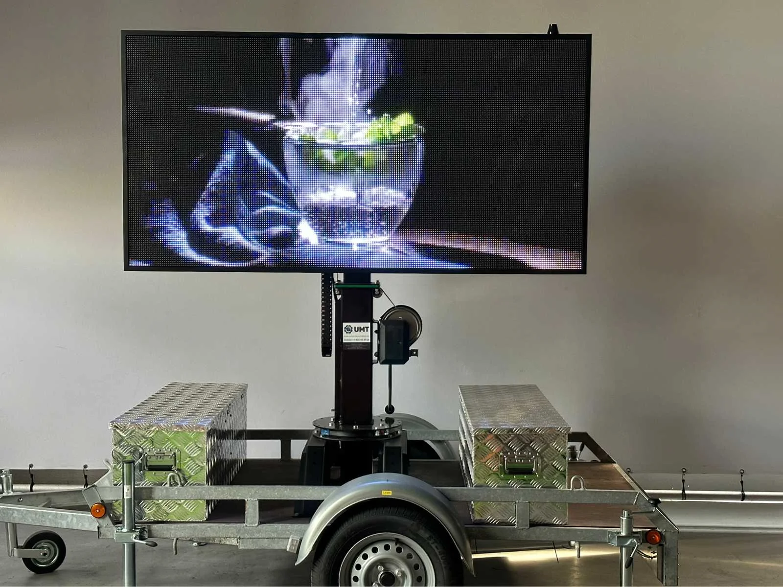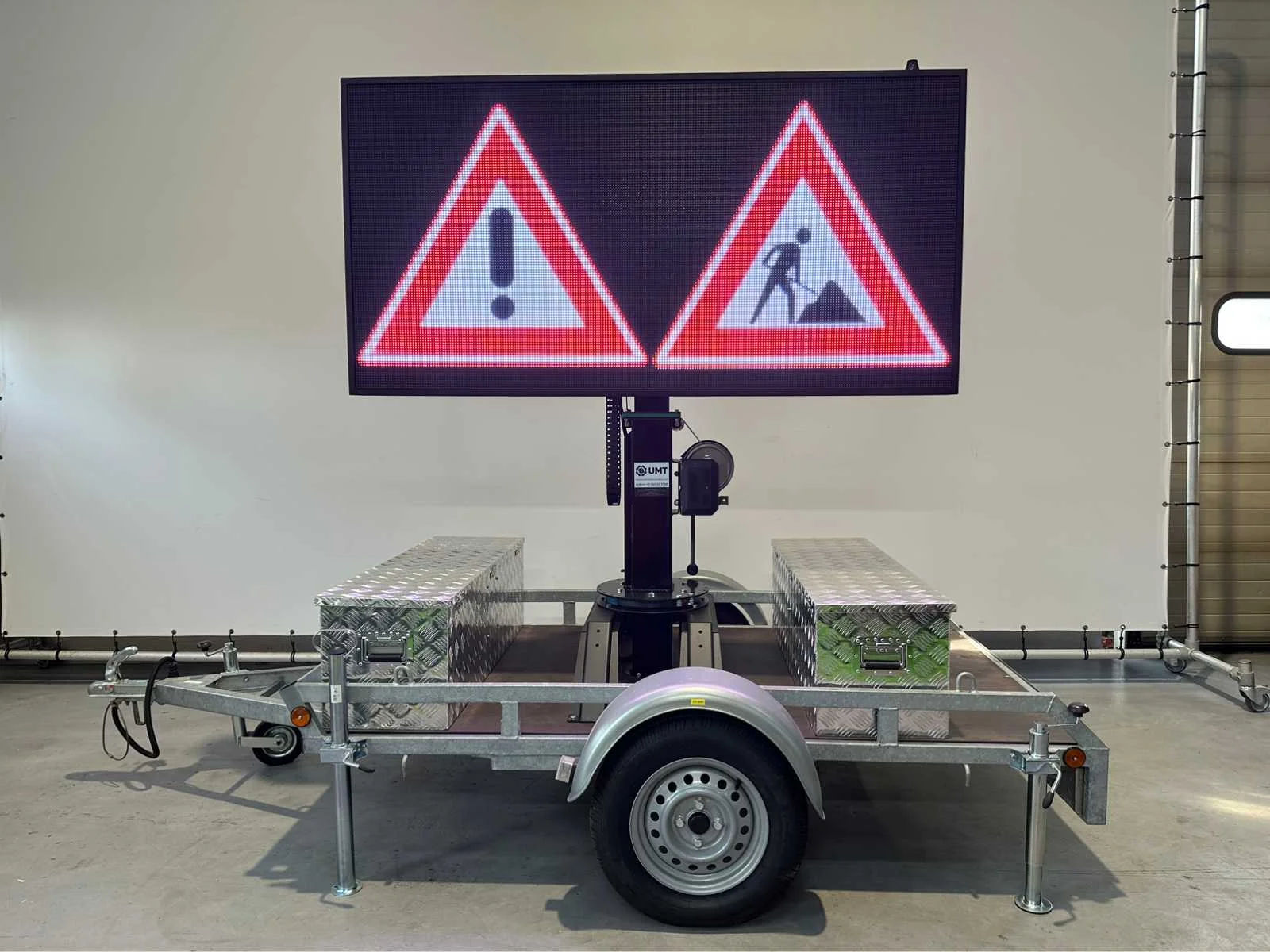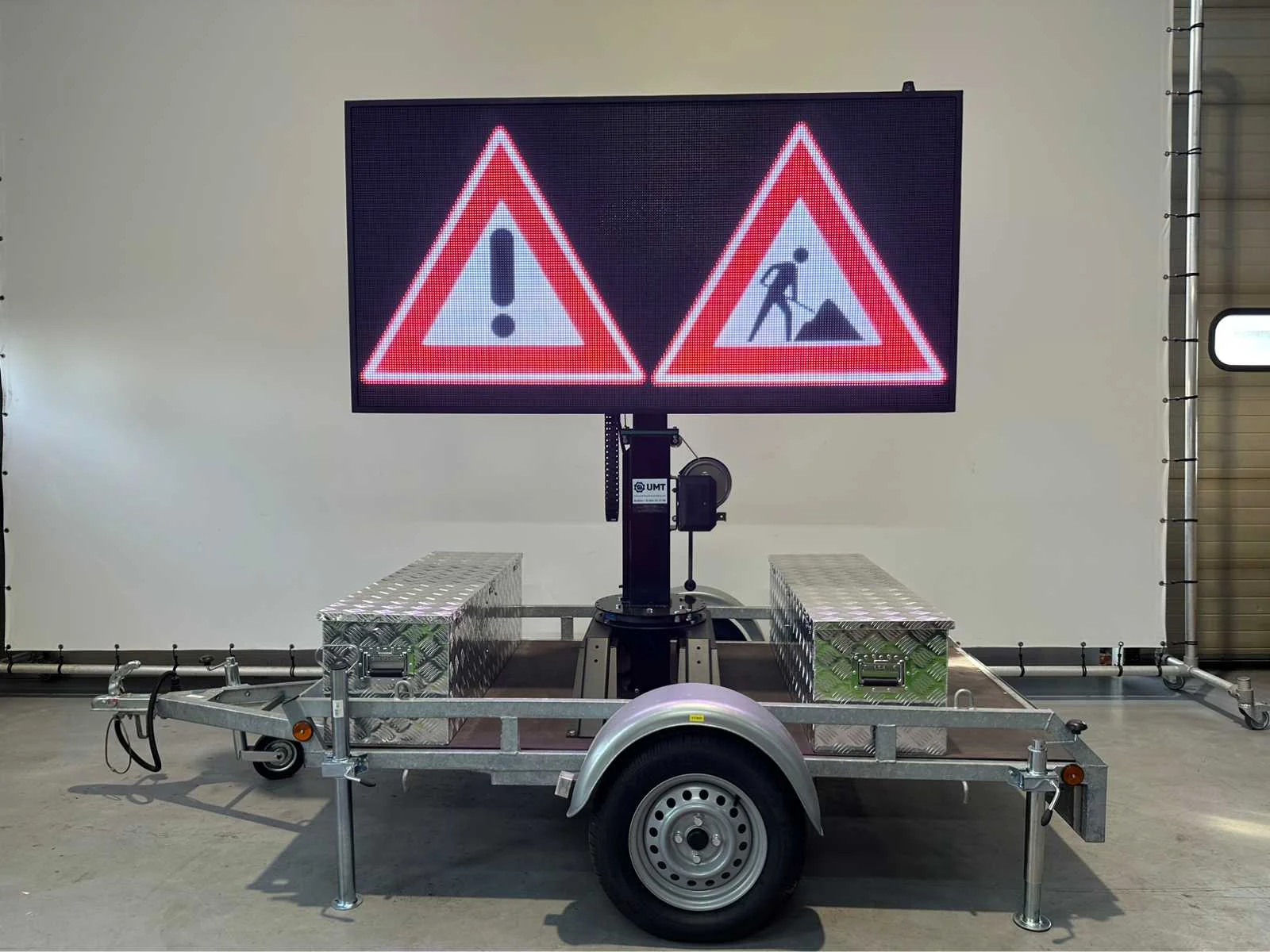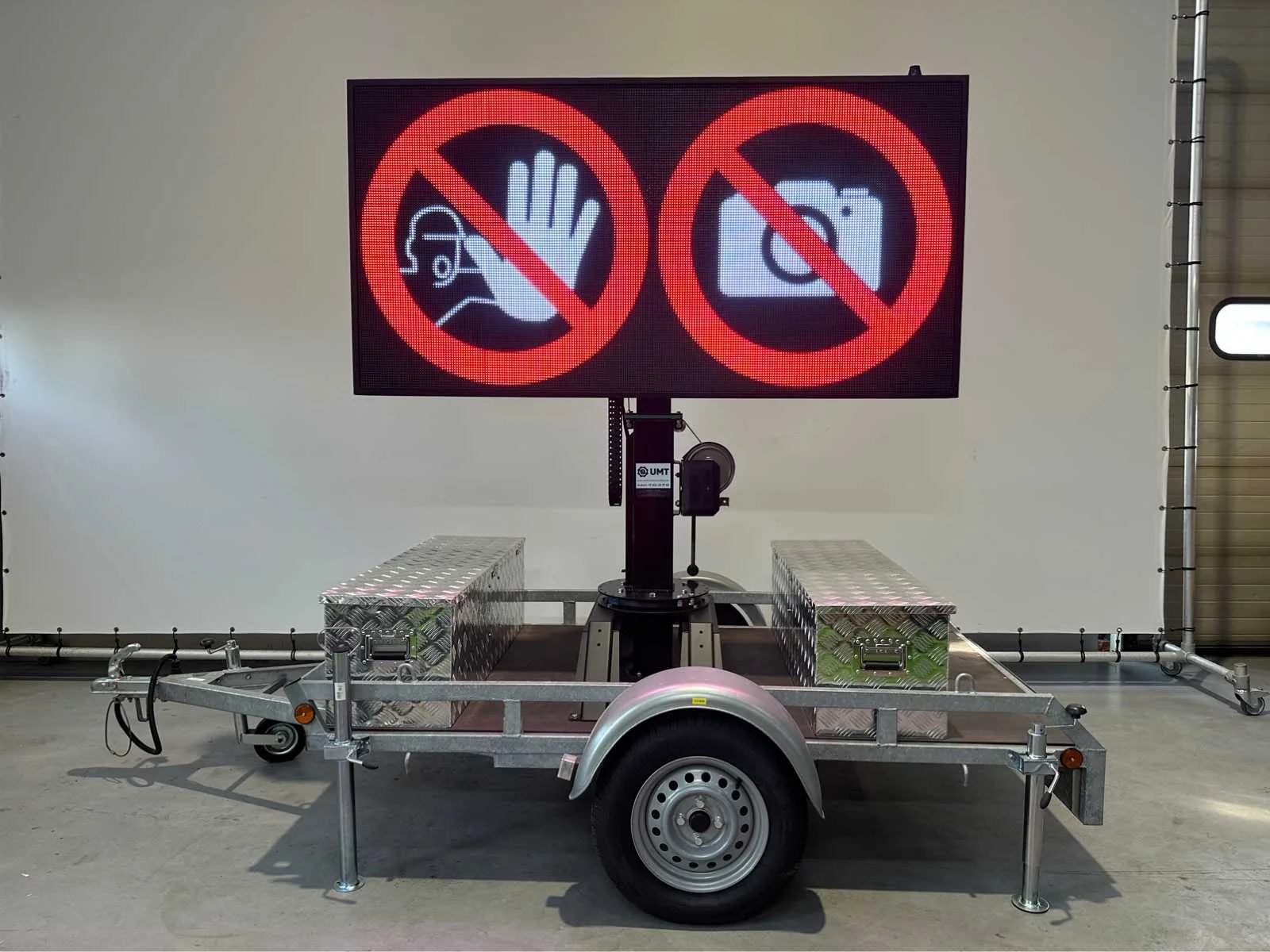 Ongebruikt , voor binnen en buiten weerbestendig , aanhanger onder 750 kg dus niet kenteken plichtig , ia app op telefoon te bedienen , ledscherm full color , ingebouwde accu oplader en omvormer , kan foto,s , jpg,s , matrix bewegende beelden , filmpjes , video input, teksten , logo,s , pijlen en afzettingen en bewegende beelden aan , zie filmpje voor demonstratie. Met TUV keuring en COC , telescoop mast 2,0 meter, 2 x accu,s ingebouwd voor 2 dagen reclame. beeld ook op beweegbare voet te draaien 360c , te instellen via WiFi , met 4 extra losse modules voor vervanging led module , tekstkar , informatiekar , verkeersinformatiebord , matrix bord , afmetingen scherm 1,97 x 1.00 , diagonaal 2,20 meter , europese fabrikant , Nederlandse helpdesk beschikbaar. Nee Merk: Viplex tekstkar Type: P8 Led Bouwjaar: 2023 Eigen gewicht: 465kg Totale afmeting L: 3350mm Totale afmeting Breedte: 1500mm Totale afmeting Hoogte: 1850mm