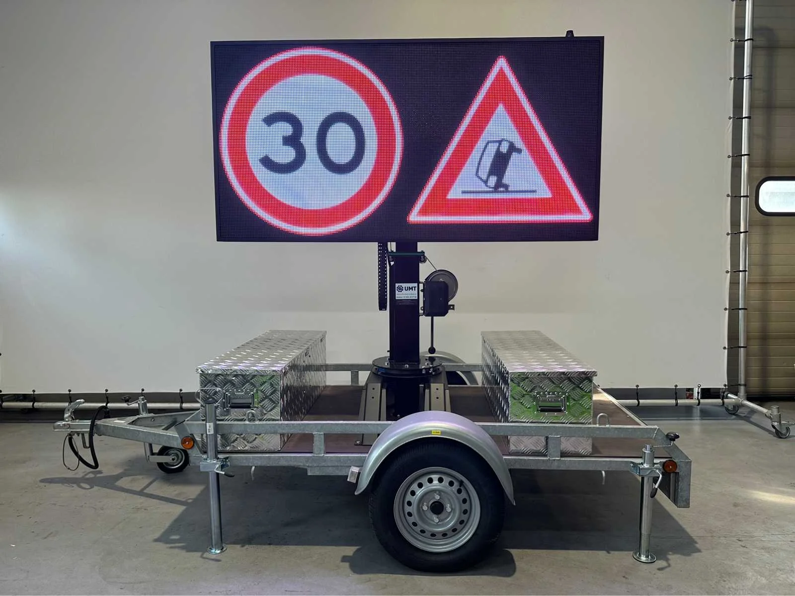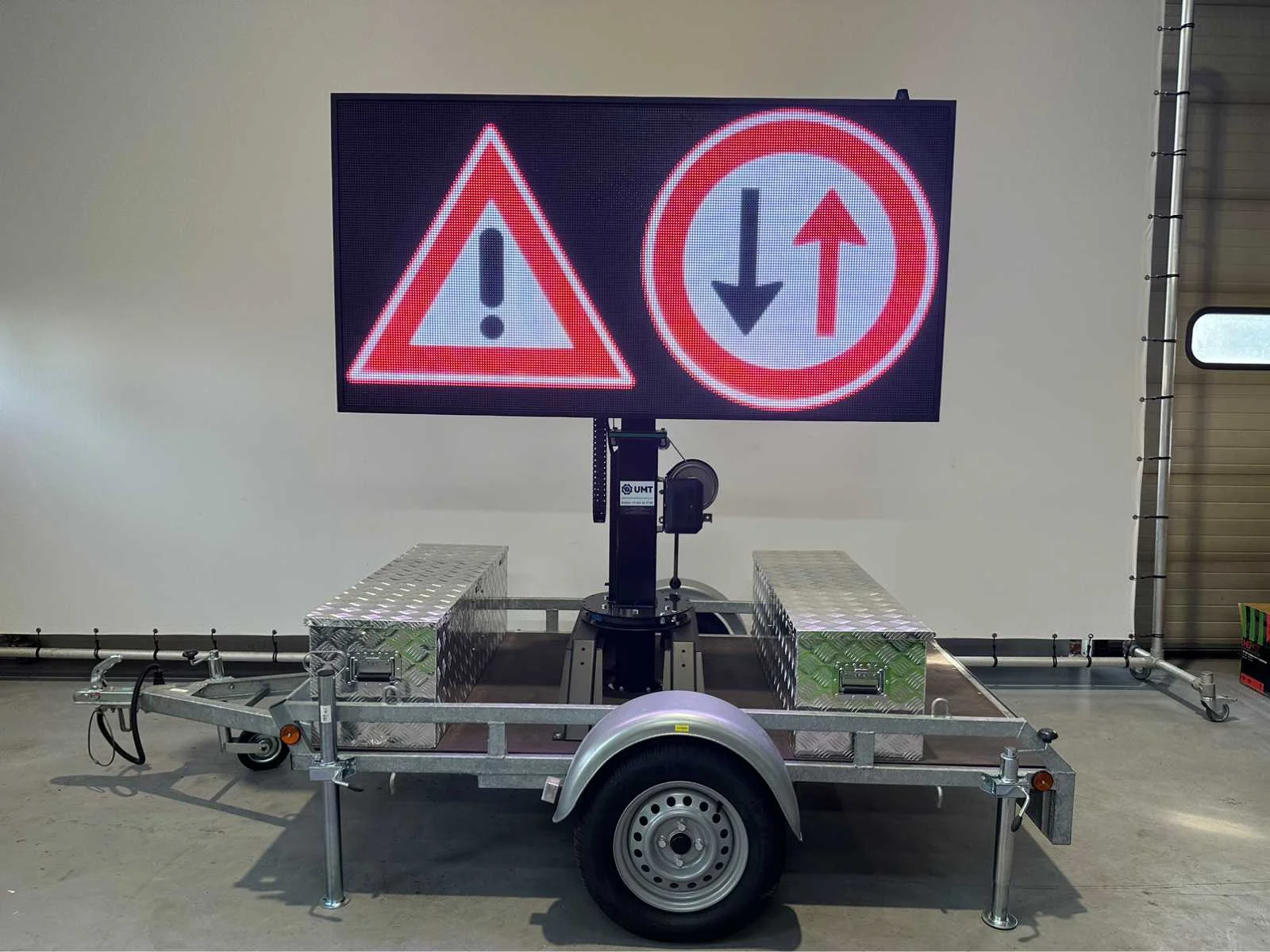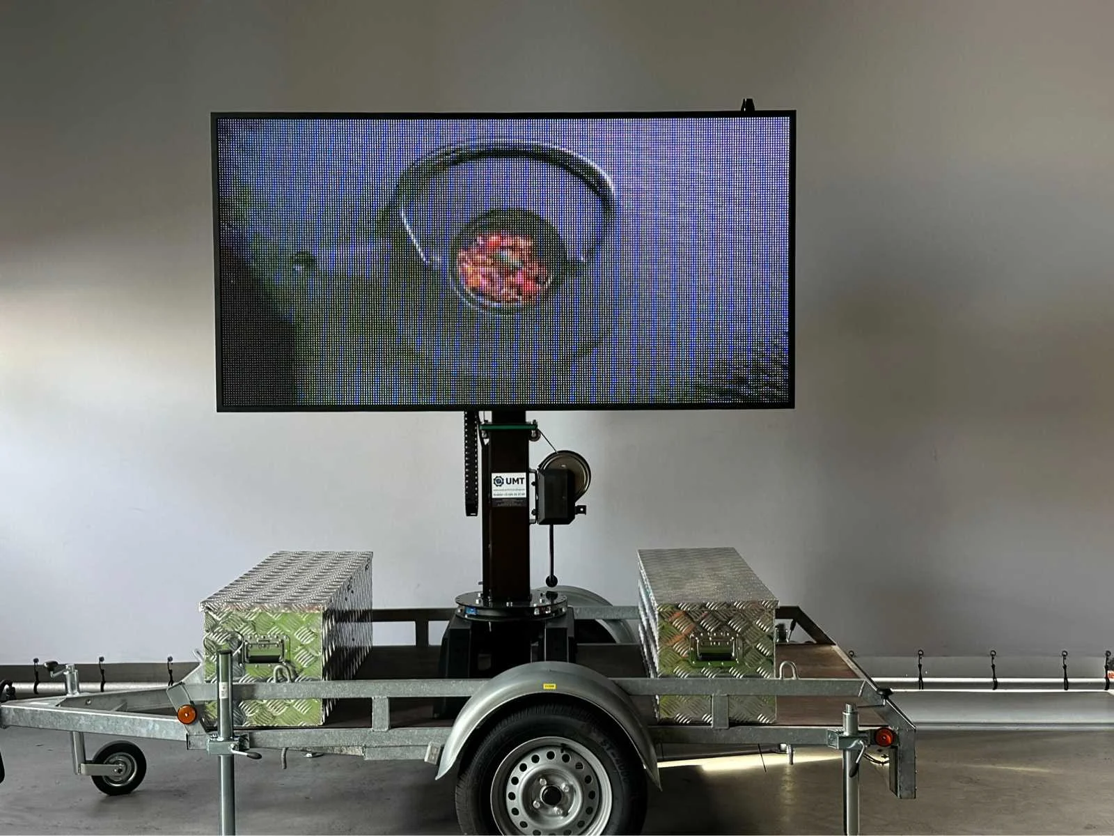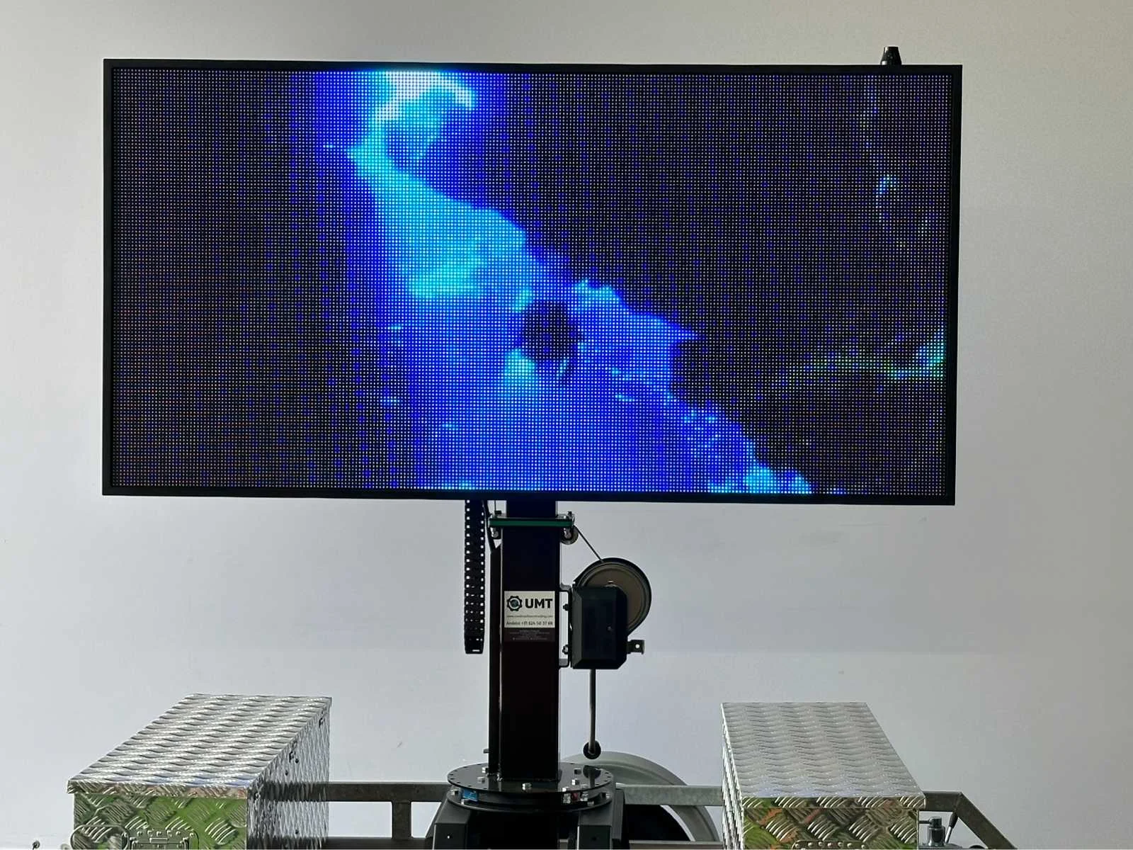 Ongebruikt , voor binnen en buiten weerbestendig , aanhanger onder 750 kg dus niet kenteken plichtig , ia app op telefoon te bedienen , ledscherm full color , ingebouwde accu oplader en omvormer , kan foto,s , jpg,s , matrix bewegende beelden , filmpjes , video input, teksten , logo,s , pijlen en afzettingen en bewegende beelden aan , zie filmpje voor demonstratie. Met TUV keuring en COC , telescoop mast 2,0 meter, 2 x accu,s ingebouwd voor 2 dagen reclame. beeld ook op beweegbare voet te draaien 360c , te instellen via WiFi , met 4 extra losse modules voor vervanging led module , tekstkar , informatiekar , verkeersinformatiebord , matrix bord , afmetingen scherm 1,97 x 1.00 , diagonaal 2,20 meter , europese fabrikant , Nederlandse helpdesk beschikbaar. Nee Merk: Viplex tekstkar Type: P8 Led Bouwjaar: 2023 Eigen gewicht: 465kg Totale afmeting L: 3350mm Totale afmeting Breedte: 1500mm Totale afmeting Hoogte: 1850mm