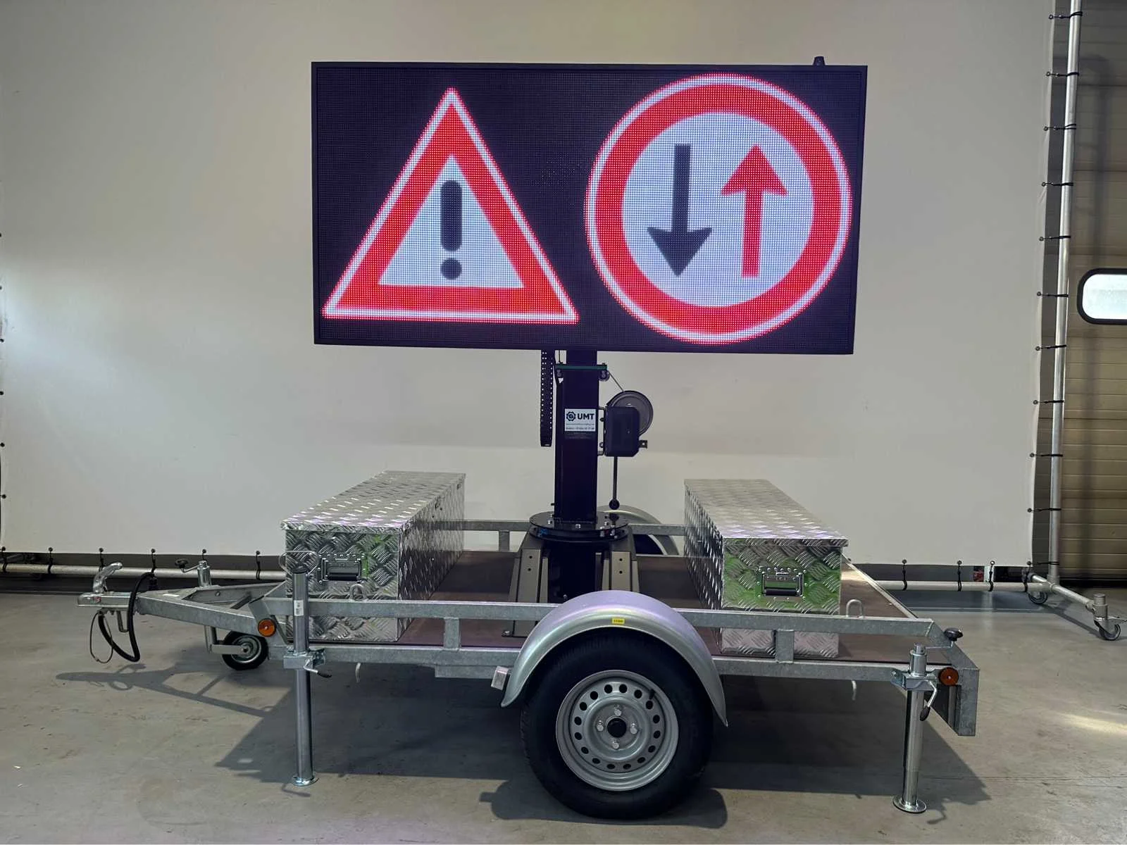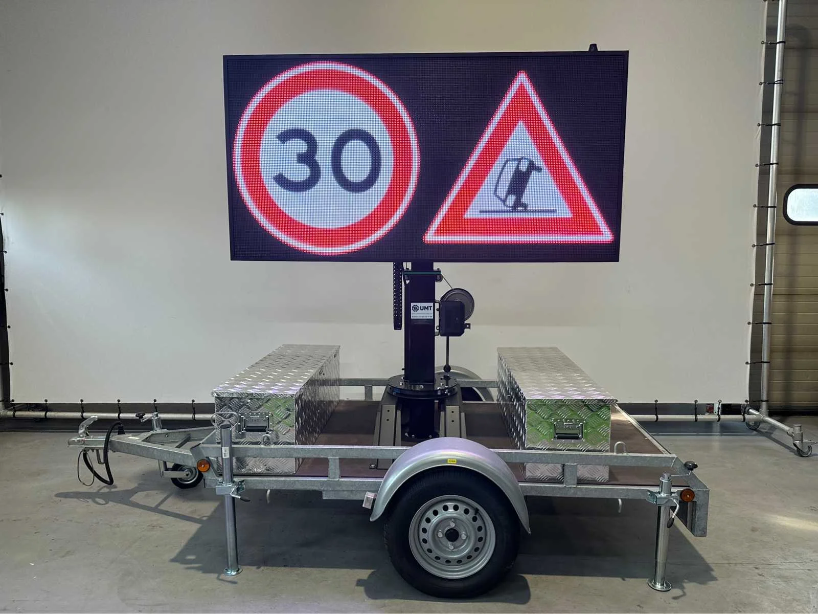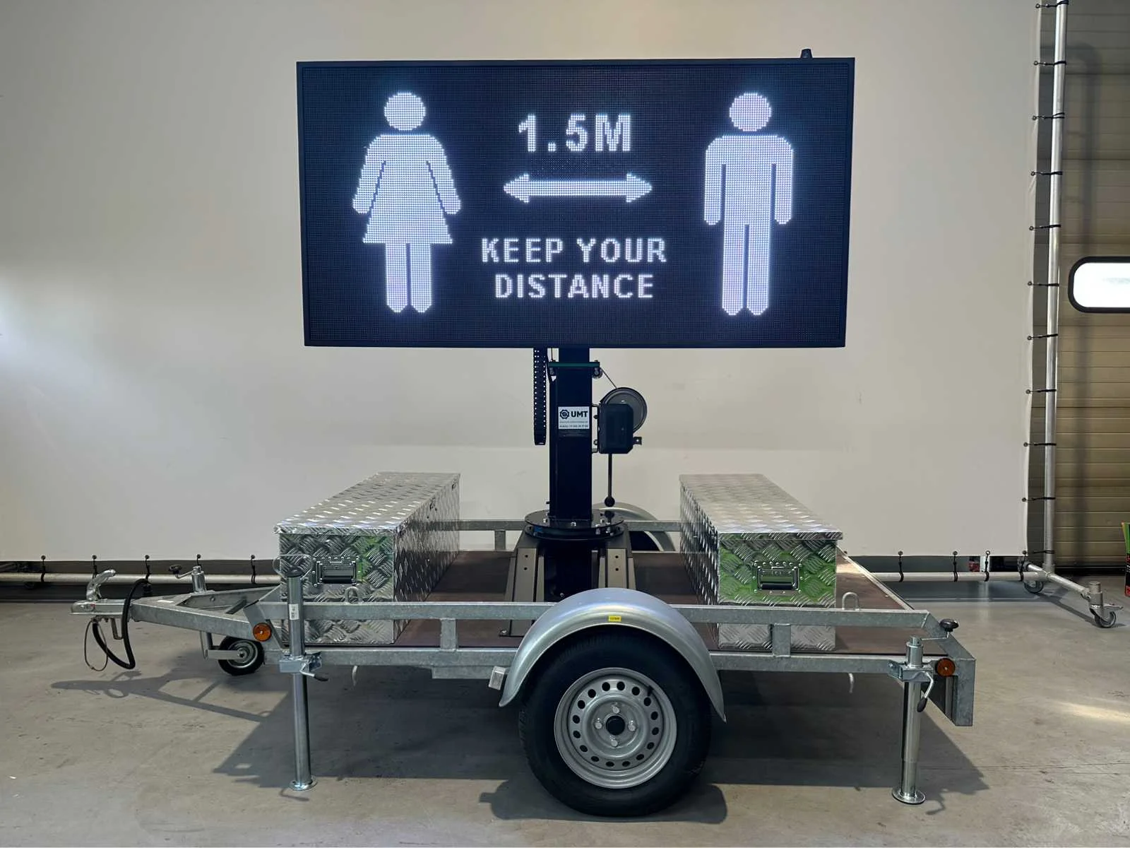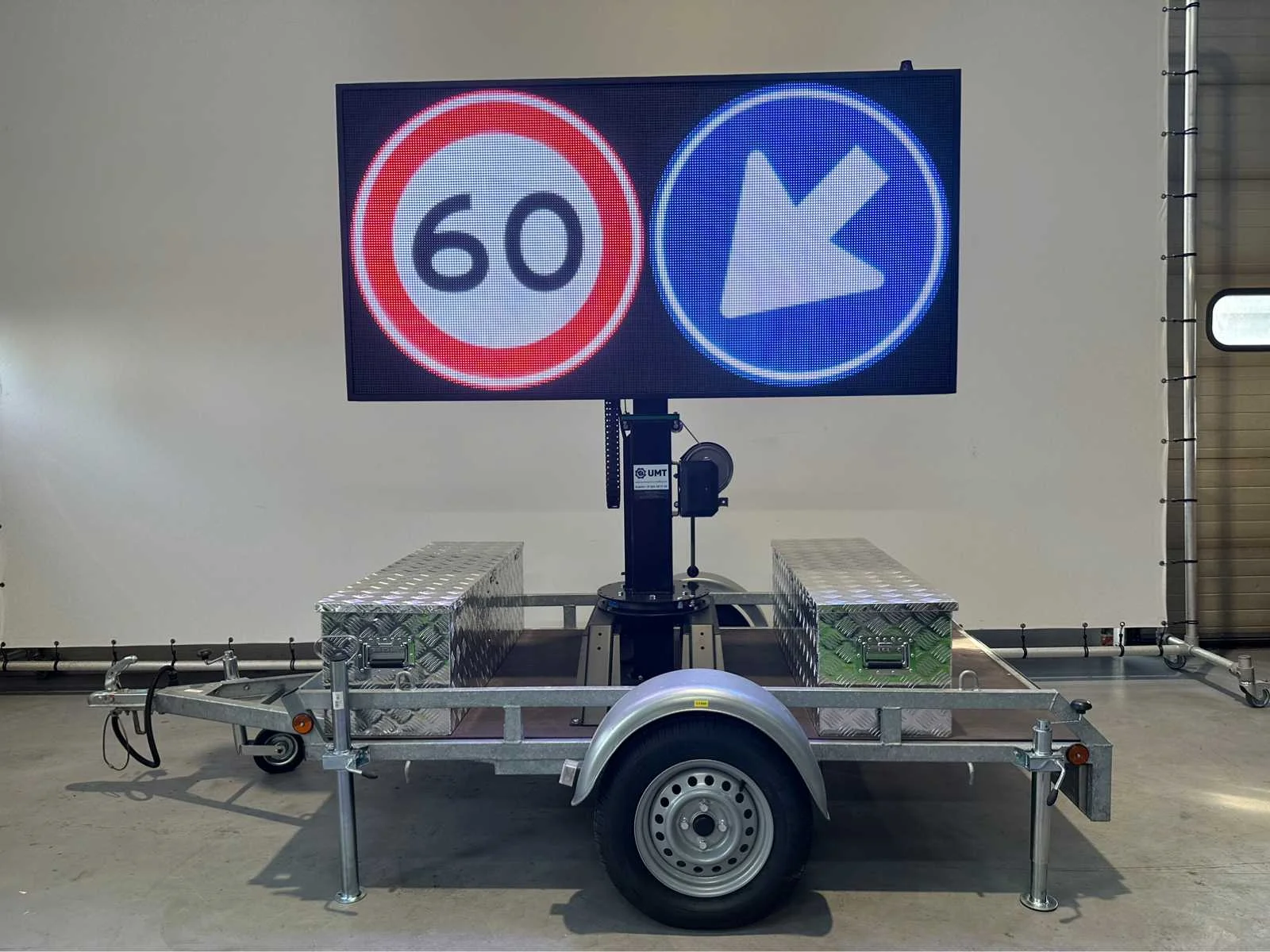 Ongebruikt , voor binnen en buiten weerbestendig , aanhanger onder 750 kg dus niet kenteken plichtig , ia app op telefoon te bedienen , ledscherm full color , ingebouwde accu oplader en omvormer , kan foto,s , jpg,s , matrix bewegende beelden , filmpjes , video input, teksten , logo,s , pijlen en afzettingen en bewegende beelden aan , zie filmpje voor demonstratie. Met TUV keuring en COC , telescoop mast 2,0 meter, 2 x accu,s ingebouwd voor 2 dagen reclame. beeld ook op beweegbare voet te draaien 360c , te instellen via WiFi , met 4 extra losse modules voor vervanging led module , tekstkar , informatiekar , verkeersinformatiebord , matrix bord , afmetingen scherm 1,97 x 1.00 , diagonaal 2,20 meter , europese fabrikant , Nederlandse helpdesk beschikbaar. Nee Merk: Viplex tekstkar Type: P8 Led Bouwjaar: 2023 Eigen gewicht: 465kg Totale afmeting L: 3350mm Totale afmeting Breedte: 1500mm Totale afmeting Hoogte: 1850mm