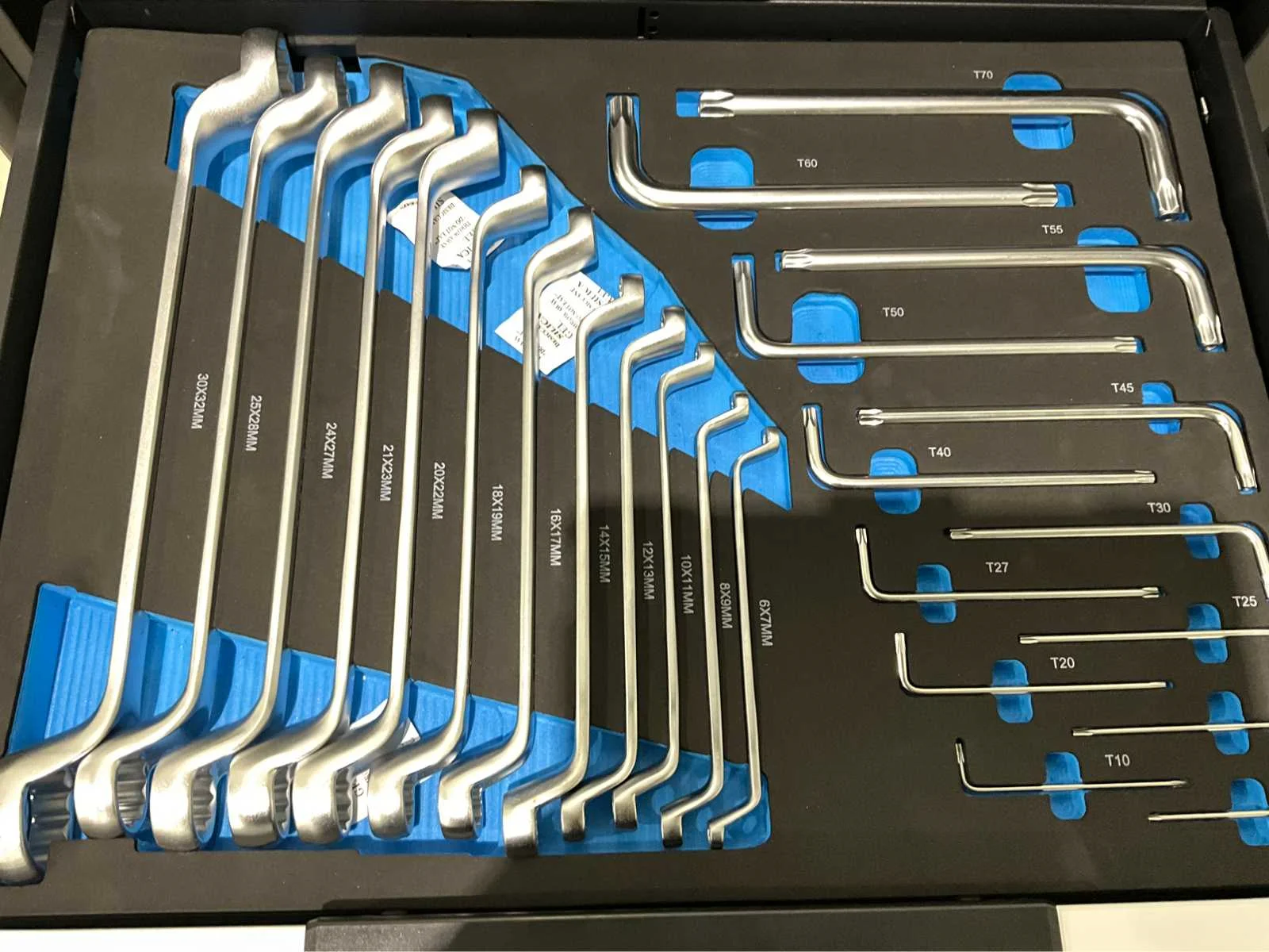 Staat: Ongebruikt, in de originele verpakking Aantal laden: 13 laden Aantal gevulde laden: 10 gevulde laden Gereedschap: Chrome Vanadium gereedschap Inhoud: 2 dopsleutel sets (1/2” & 1/4”) Momentsleutel (40-220 Nm) Impact-doppen (10-22 mm) Ringsteeksleutel set (6-32 mm) Ringratelsleutel set (8-19 mm) Inbussleutel set (1,5-10 mm) Ringsleutel set (6-32 mm) Torx sleutel set (T8-T70) Schroevendraaier set (21 stuks) Tangen set (9 stuks) Beitel en doorslagen set (18 stuks) Vijlen set (5 stuks) T-greep dopsleutel set (7-14 mm) T-greep torx sleutel set (T15-T45) Hamers (3 stuks) VDE gereedschap (3 tangen en 7 schroevendraaiers) Enzovoort... Nee Merk: Stahlgruppe Type: Jumbo Bouwjaar: 2025 Aantal laden: 13 Met inhoud: true Eigen gewicht: 153kg Totale afmeting L: 1150mm Totale afmeting Breedte: 550mm Totale afmeting Hoogte: 1100mm