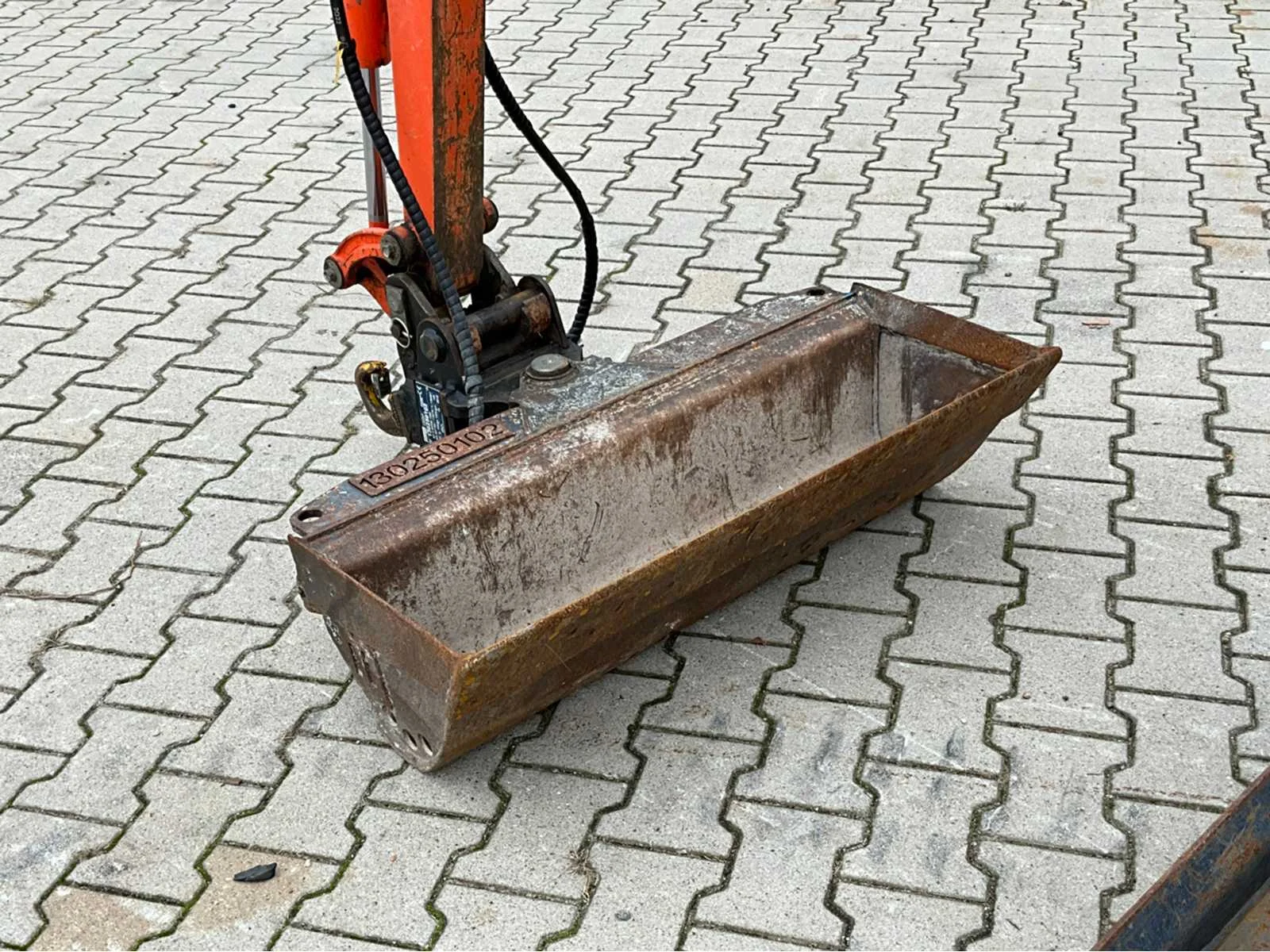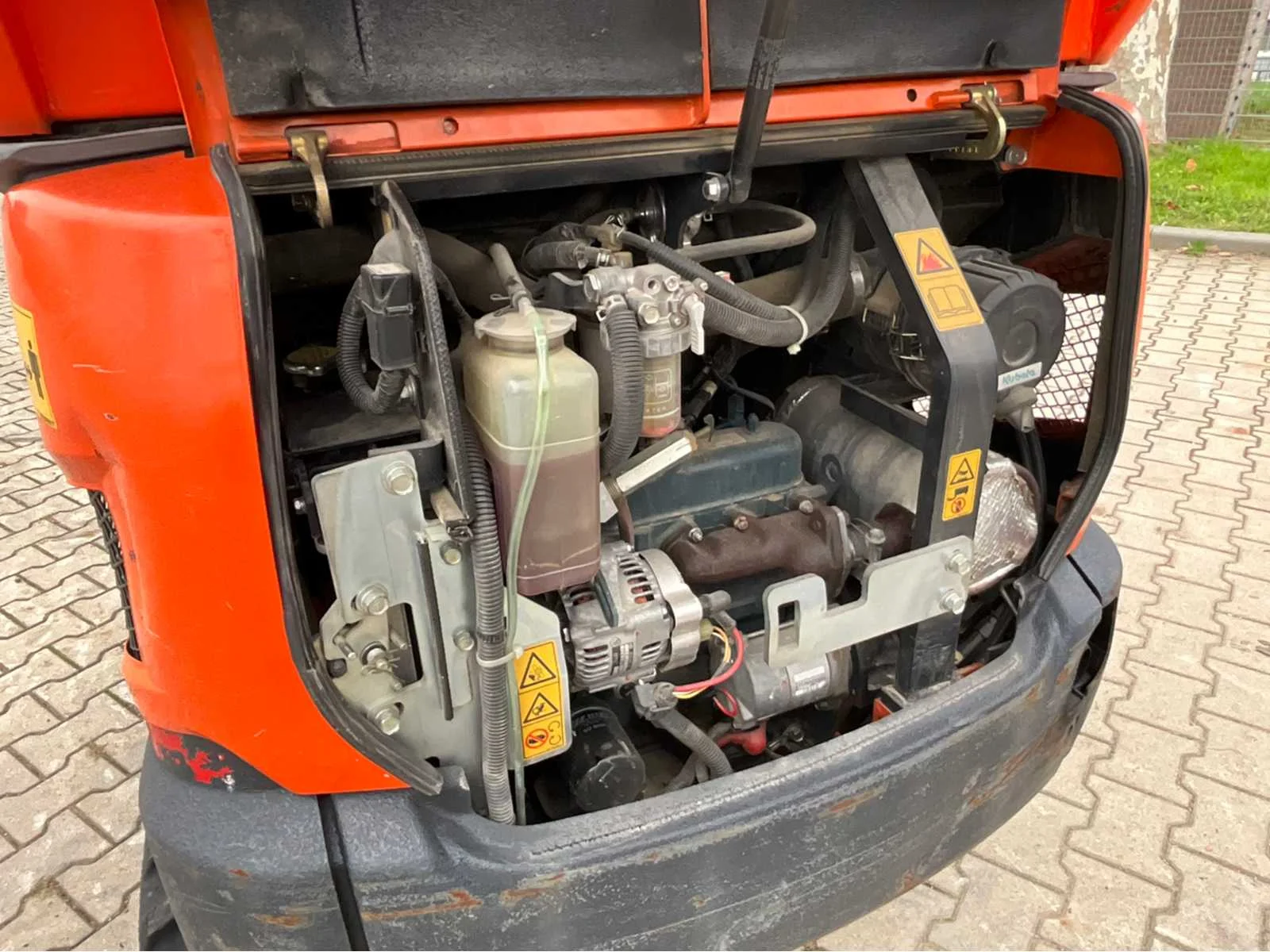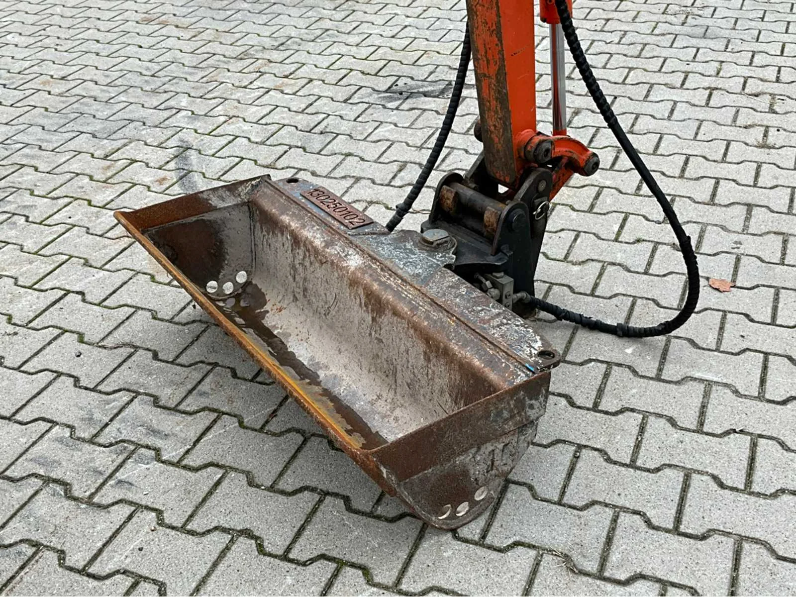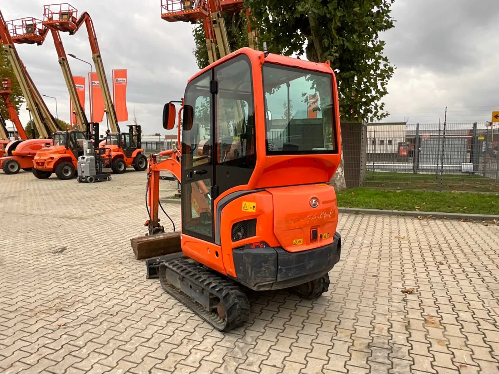 Gesloten cabine; rubber rupsbanden; rupsen hydraulisch in breedte verstelbaar 990 - 1240 mm; maximale uitstorthoogte 2250 mm; extra hydraulische functie; snelwissel; dozerblad breedte 1230 mm; zonder identificatie plaatje; working condition; Nee Merk: Kubota Type: KX016-4G Bouwjaar: 2017 Serienummer: WKFRGB1200Z062190 Merk motor: Kubota Motorvermogen (kW): 9.6kW Aantal cilinders: 3 Brandstof: Diesel Max. werkbereik: 3730mm Max. graafdiepte: 2250mm Graafbak afm. l: 350mm Graafbak afm. b: 1000mm Graafbak afm. h: 300mm Rups breedte: 230mm Afgelezen urenstand: 1828 Eigen gewicht: 1625kg Totale afmeting L: 3750mm Totale afmeting Breedte: 1250mm Totale afmeting Hoogte: 2350mm