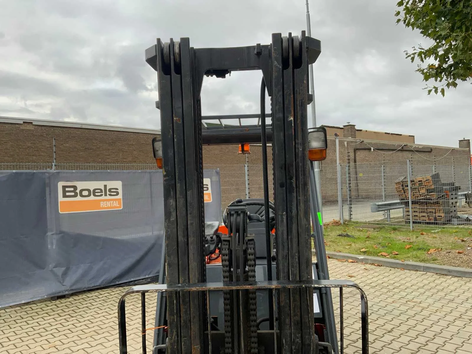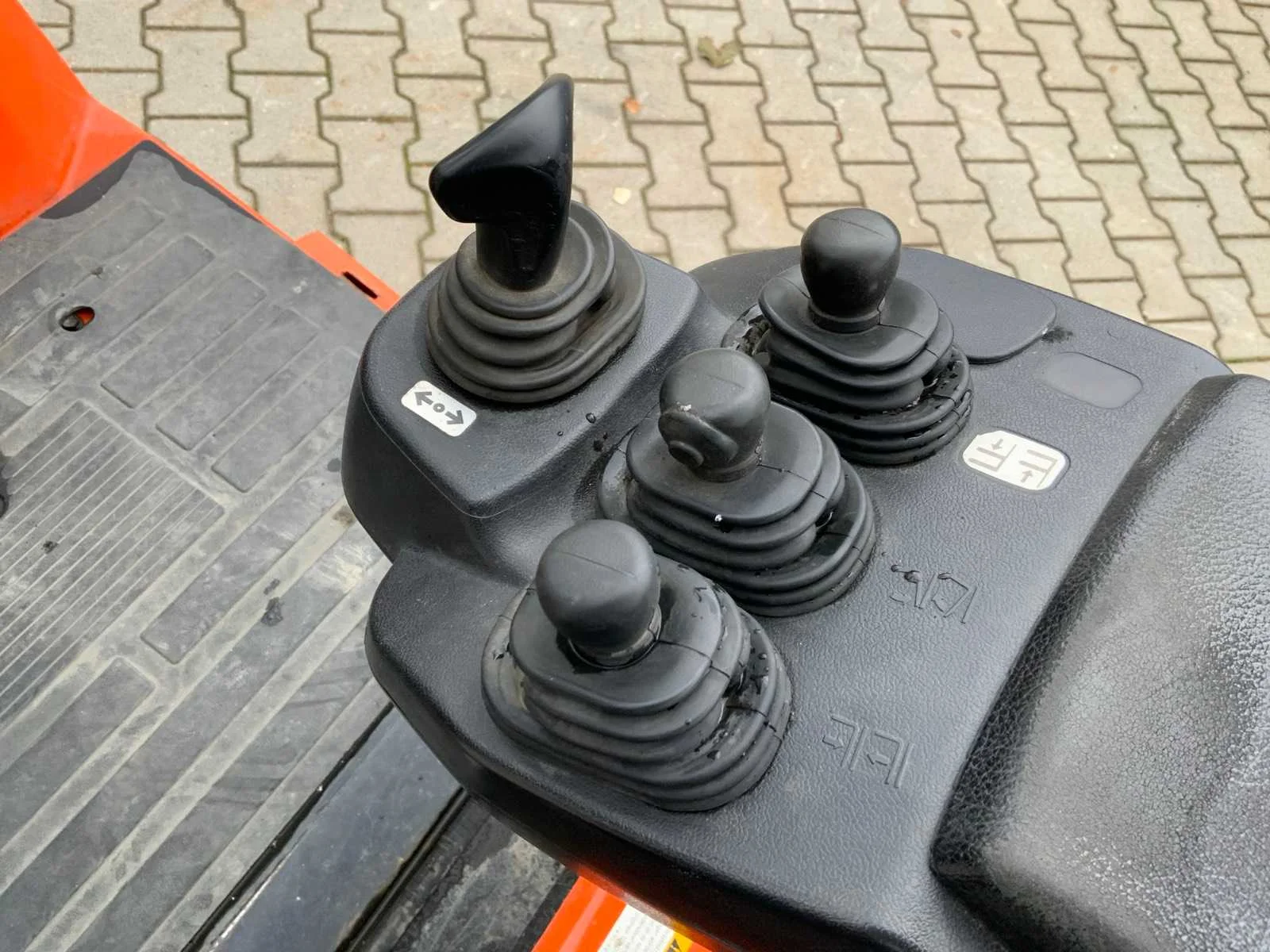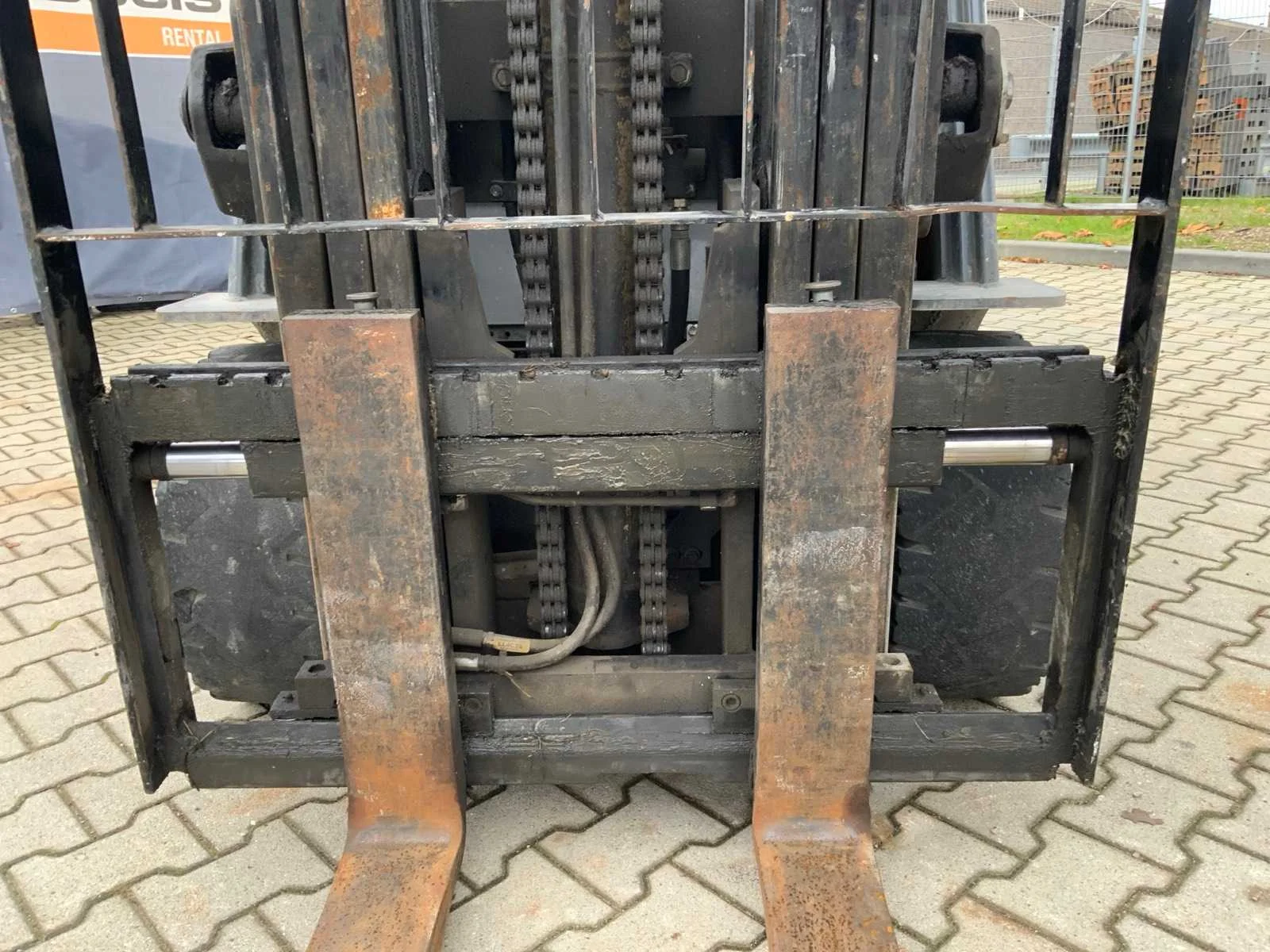 Vorkbreedte125 mm; working condition; Nee Merk: Toyota Type: 7FBMF35 Bouwjaar: 2012 Serienummer: 7FBMF3515580 Brandstof: Elektrisch Aantal wielen: 4 Afgelezen urenstand: 2189 Free-lift: true Side-shift: true Triple mast: true Hefvermogen: 3500kg Lepellengte: 1200mm Max. hefhoogte: 4700mm Vol rubber banden: true Minimale doorrijhoogte: 2500mm