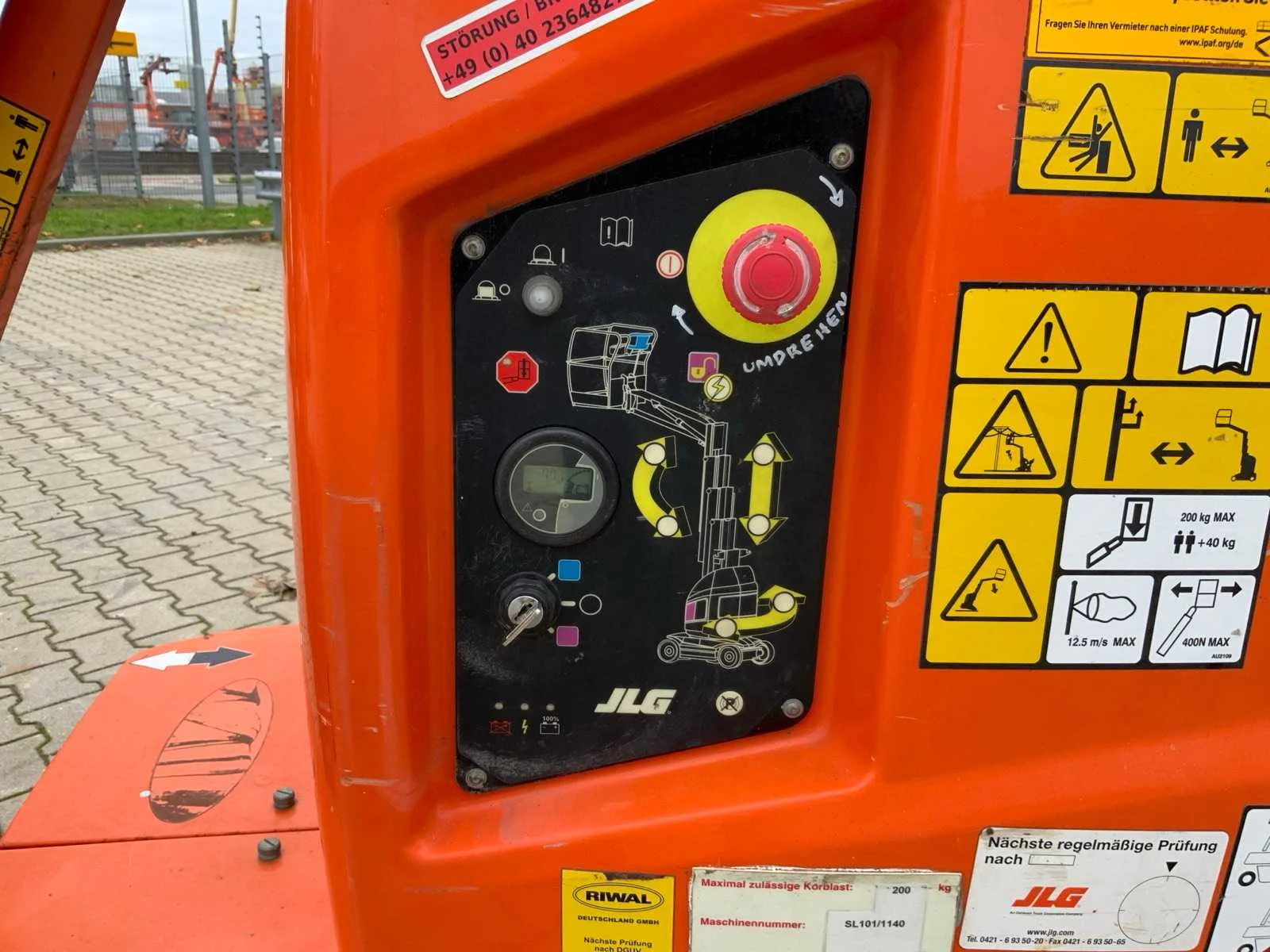 Platform vloerhoogte 8000 mm; kooibediening; 230 Volt kooi stroom aansluiting; ingebouwde acculader; 24 Volt / 230 Volt; working condition Nee Merk: JLG Type: Toucan 10E Bouwjaar: 2014 Serienummer: A300035978 Elektrisch: true Knikarm hoogwerker: true Masthoogwerker: true Werkhoogte: 10100mm Horizontale rijkwijdte: 3380mm Plateau afm. l: 900mm Plateau afm. b: 700mm Platform capaciteit: 200kg Accu lader: true Afgelezen urenstand: 773 Eigen gewicht: 3050kg Totale afmeting L: 2850mm Totale afmeting Breedte: 1000mm Totale afmeting Hoogte: 2000mm