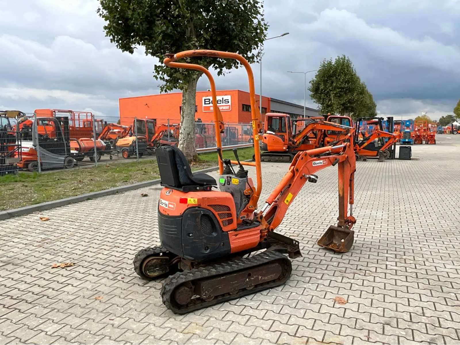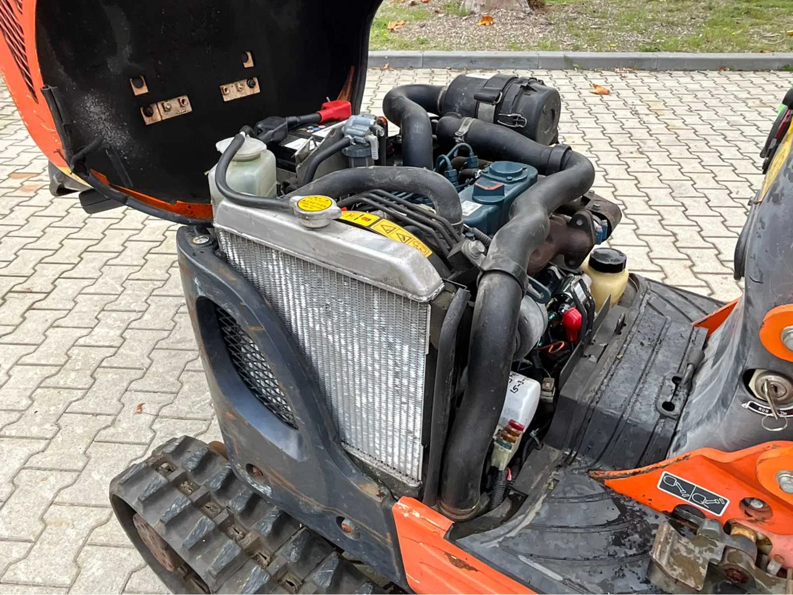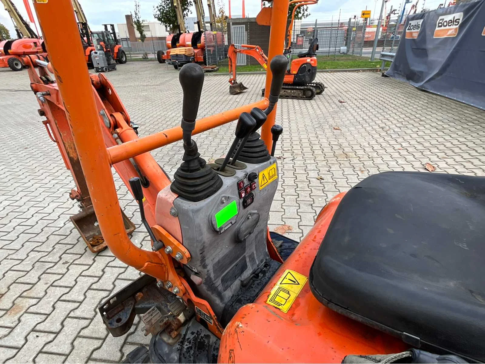 Zonder cabine; canopy; neerklapbare rolbeugel; rubber rupsbanden; rupsen hydraulisch in breedte verstelbaar 750 - 990 mm; binnendraaier; maximale uitstorthoogte 2200 mm; extra hydraulische functie; dozerblad breedte 750 mm; working condition Nee Merk: Kubota Type: U10-3 VHG Bouwjaar: 2015 Serienummer: JKUU0103C01H24878 Merk motor: Kubota Motorvermogen (kW): 7.4kW Aantal cilinders: 3 Brandstof: Diesel Max. werkbereik: 3330mm Max. graafdiepte: 1800mm Graafbak afm. l: 270mm Graafbak afm. b: 350mm Graafbak afm. h: 250mm Rups breedte: 180mm Afgelezen urenstand: 1290 Eigen gewicht: 1150kg Totale afmeting L: 3000mm Totale afmeting Breedte: 750mm Totale afmeting Hoogte: 2250mm