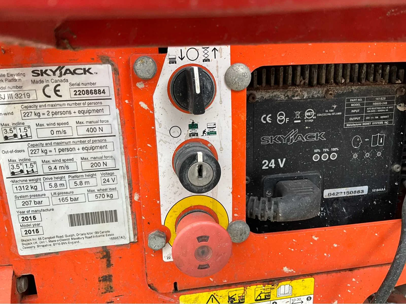 Gebruik: binnen; platform vloerhoogte 5800 mm; uitschuifbaar platform afmeting circa 2500x650 mm; interne acculader 230 Volt; kooibediening; 230 Volt stroom aansluiting platform; transporthoogte circa 1750 mm; glasplaatje urenstand ontbreekt; working condition; Nee Merk: SkyJack Type: SJ III 3219 Bouwjaar: 2015 Serienummer: 22086884 Elektrisch: true Schaarhoogwerker: true Werkhoogte: 7800mm Plateau afm. l: 1600mm Plateau afm. b: 650mm Platform capaciteit: 227kg Accu lader: true Eigen gewicht: 1350kg Totale afmeting L: 1810mm Totale afmeting Breedte: 800mm Totale afmeting Hoogte: 2110mm