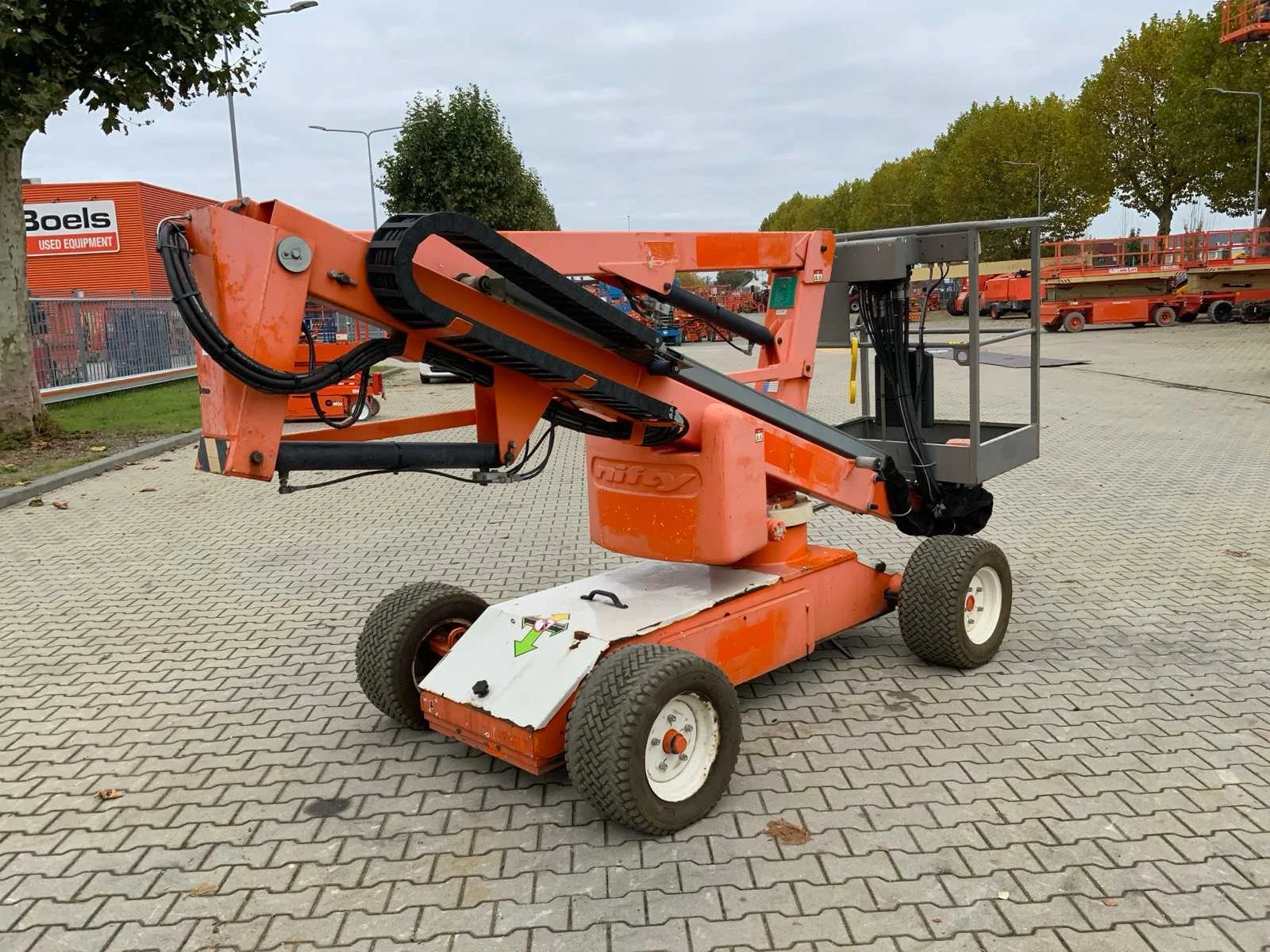 Elektrische aandrijving; gebruik: binnen en buiten; platform vloerhoogte 10200 mm; kooibediening; zonder urenstand aflezing; working condition; Nee Merk: Niftylift Type: Nifty HR12NE Bouwjaar: 2014 Serienummer: 12/29357 Elektrisch: true Telescoop hoogwerker: true Knikarm hoogwerker: true Werkhoogte: 12200mm Horizontale rijkwijdte: 6100mm Plateau afm. l: 1100mm Plateau afm. b: 650mm Platform capaciteit: 200kg Eigen gewicht: 3250kg Totale afmeting L: 4100mm Totale afmeting Breedte: 1500mm Totale afmeting Hoogte: 1900mm
