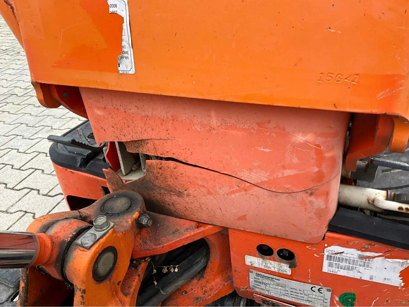Zonder cabine; canopy; neerklapbare rolbeugel; rubber rupsbanden; rupsen hydraulisch in breedte verstelbaar 750 - 990 mm; binnendraaier; maximale uitstorthoogte 2200 mm; extra hydraulische functie; dozerblad breedte 750 mm; beschermkap gebarsten; working condition Nee Merk: Kubota Type: U10-3 VHG Bouwjaar: 2015 Serienummer: JKUU0103V01H25482 Merk motor: Kubota Motorvermogen (kW): 7.4kW Aantal cilinders: 3 Brandstof: Diesel Max. werkbereik: 3330mm Max. graafdiepte: 1800mm Graafbak afm. l: 300mm Graafbak afm. b: 700mm Graafbak afm. h: 250mm Rups breedte: 180mm Afgelezen urenstand: 1104 Eigen gewicht: 1150kg Totale afmeting L: 3000mm Totale afmeting Breedte: 750mm Totale afmeting Hoogte: 2250mm
