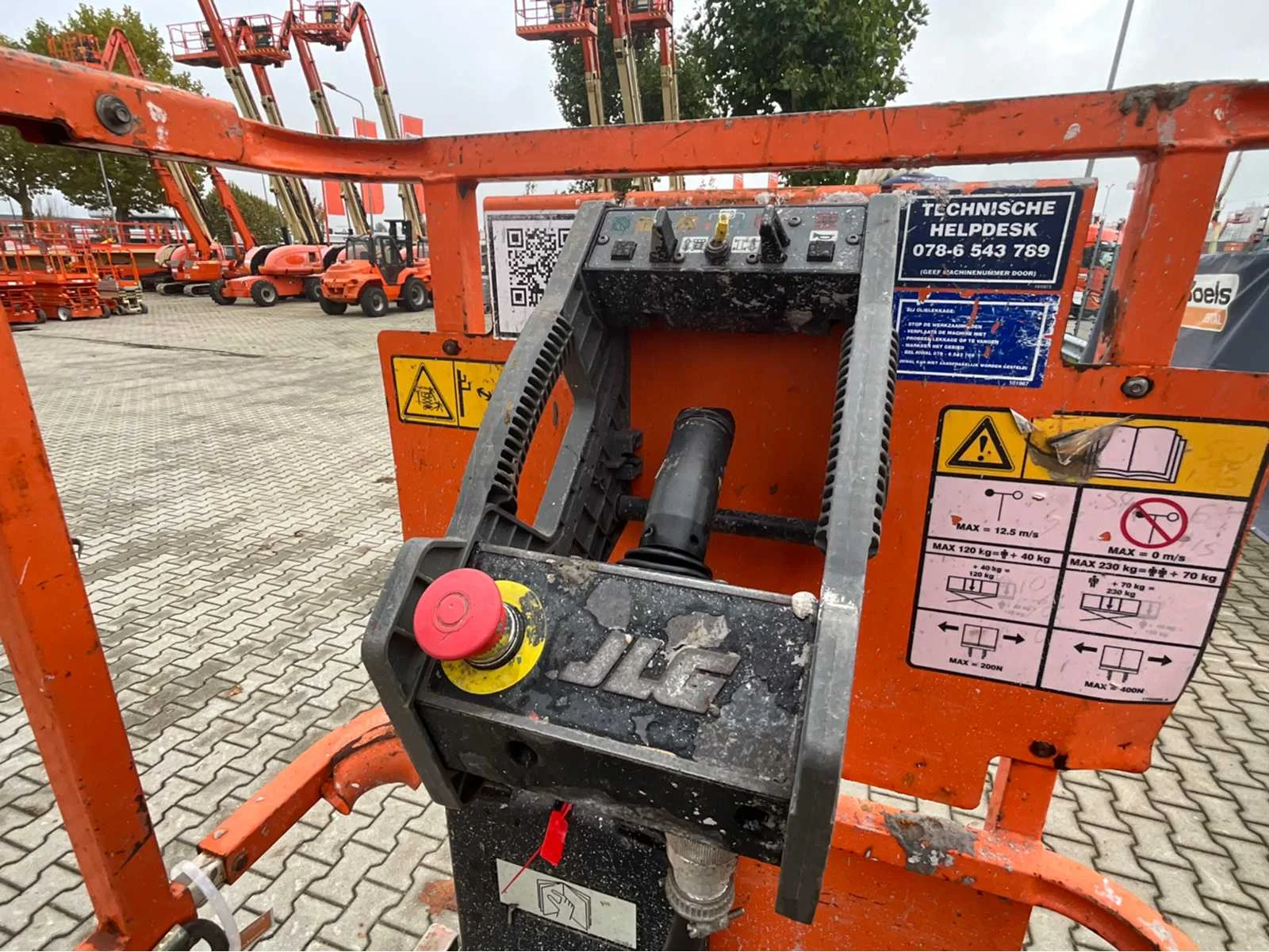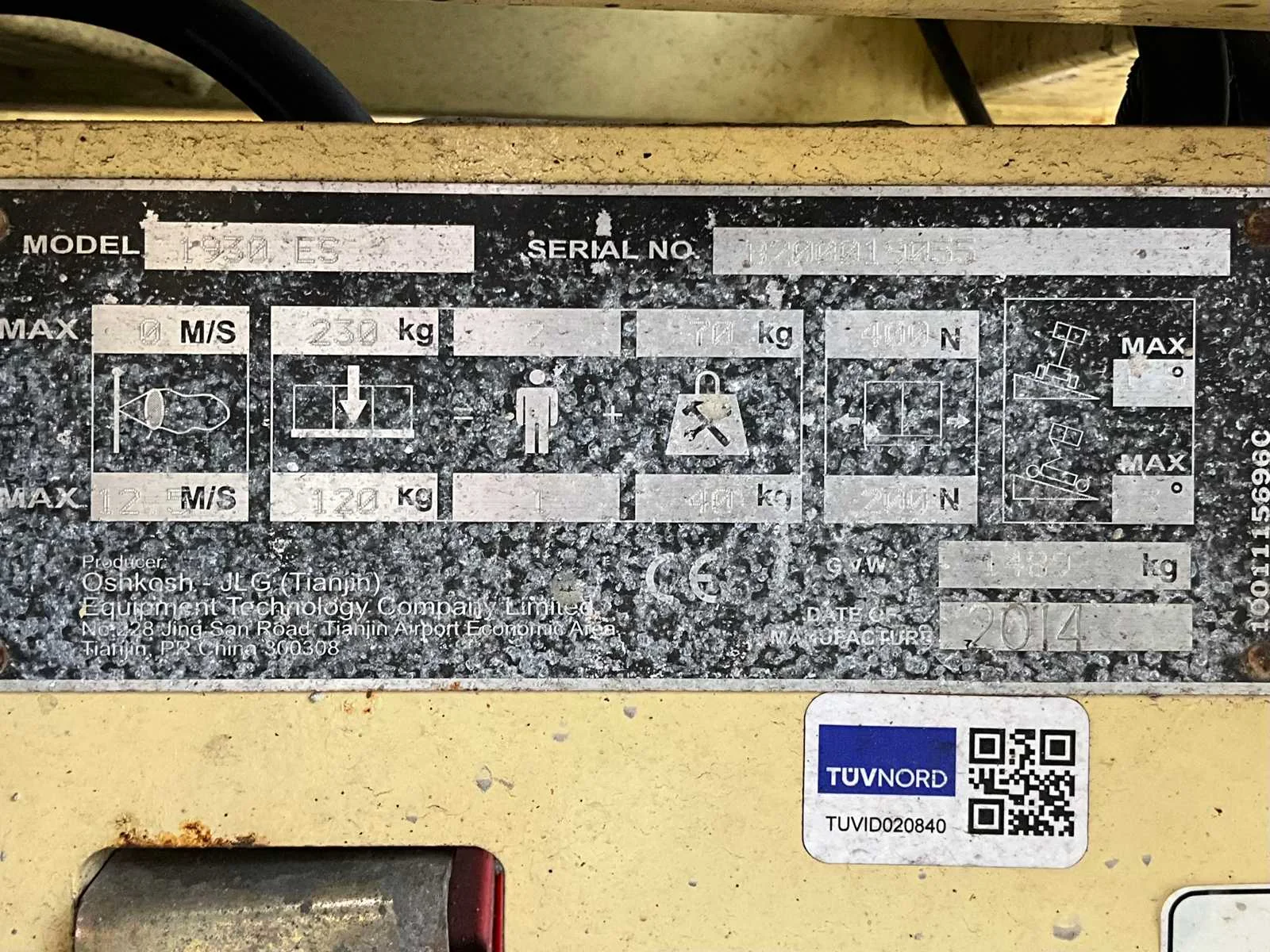 Gebruik: binnen en buiten; platform vloerhoogte 5700 mm; uitschuifbaar platform afmeting circa 2750x750 mm; interne acculader 230 Volt; transporthoogte circa 1750 mm; working condition Nee Merk: JLG Type: 1930ES Bouwjaar: 2014 Serienummer: B200019055 Elektrisch: true Schaarhoogwerker: true Werkhoogte: 7700mm Plateau afm. l: 1850mm Plateau afm. b: 750mm Platform capaciteit: 230kg Afgelezen urenstand: 429 Eigen gewicht: 1565kg Totale afmeting L: 1900mm Totale afmeting Breedte: 800mm Totale afmeting Hoogte: 2050mm