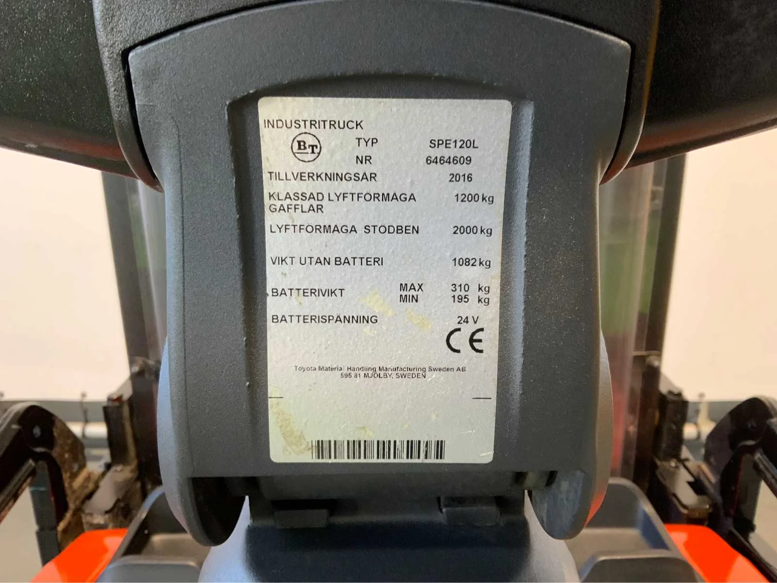 Nee Merk: BT Type: BT SPE 120L Bouwjaar: 2016 Serienummer: 6464609 Hefvermogen: 1200kg Hefhoogte: 4000mm Lepellengte: 1150mm Afgelezen urenstand: 4211 Eigen gewicht: 1392kg Totale afmeting L: 2220mm Totale afmeting Breedte: 800mm Totale afmeting Hoogte: 2010mm Meerij stapelaar: true Accu lader: true