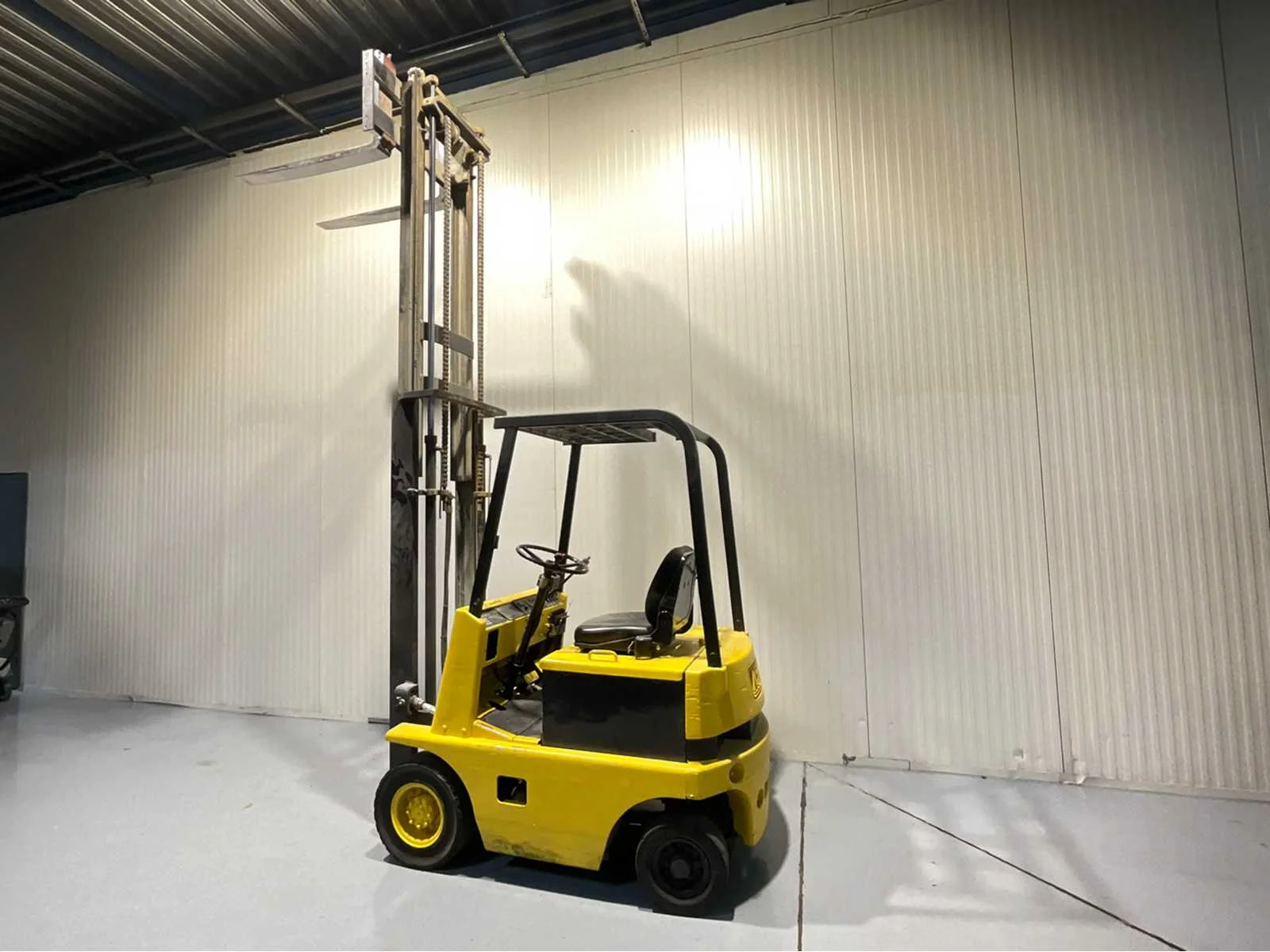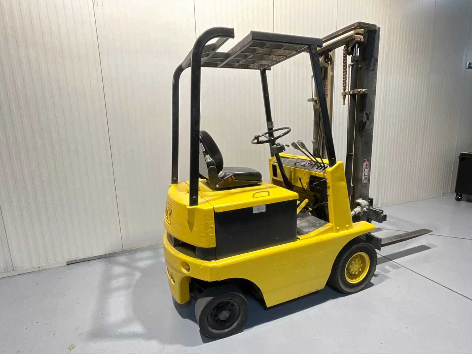 Incl vorkverlengers van 2 meter Nee Merk: Nyk Type: FB15p Serienummer: 22140319 Brandstof: Elektrisch Soort band: Volrubber banden Aantal wielen: 4 Afgelezen urenstand: 4788 Duplex mast: true Hefvermogen: 1500kg Lepellengte: 1000mm Max. hefhoogte: 3600mm Hefhoogte: 3600mm Vol rubber banden: true Minimale doorrijhoogte: 2300mm Totale afmeting L: 3400mm Totale afmeting Breedte: 1100mm Totale afmeting Hoogte: 2300mm