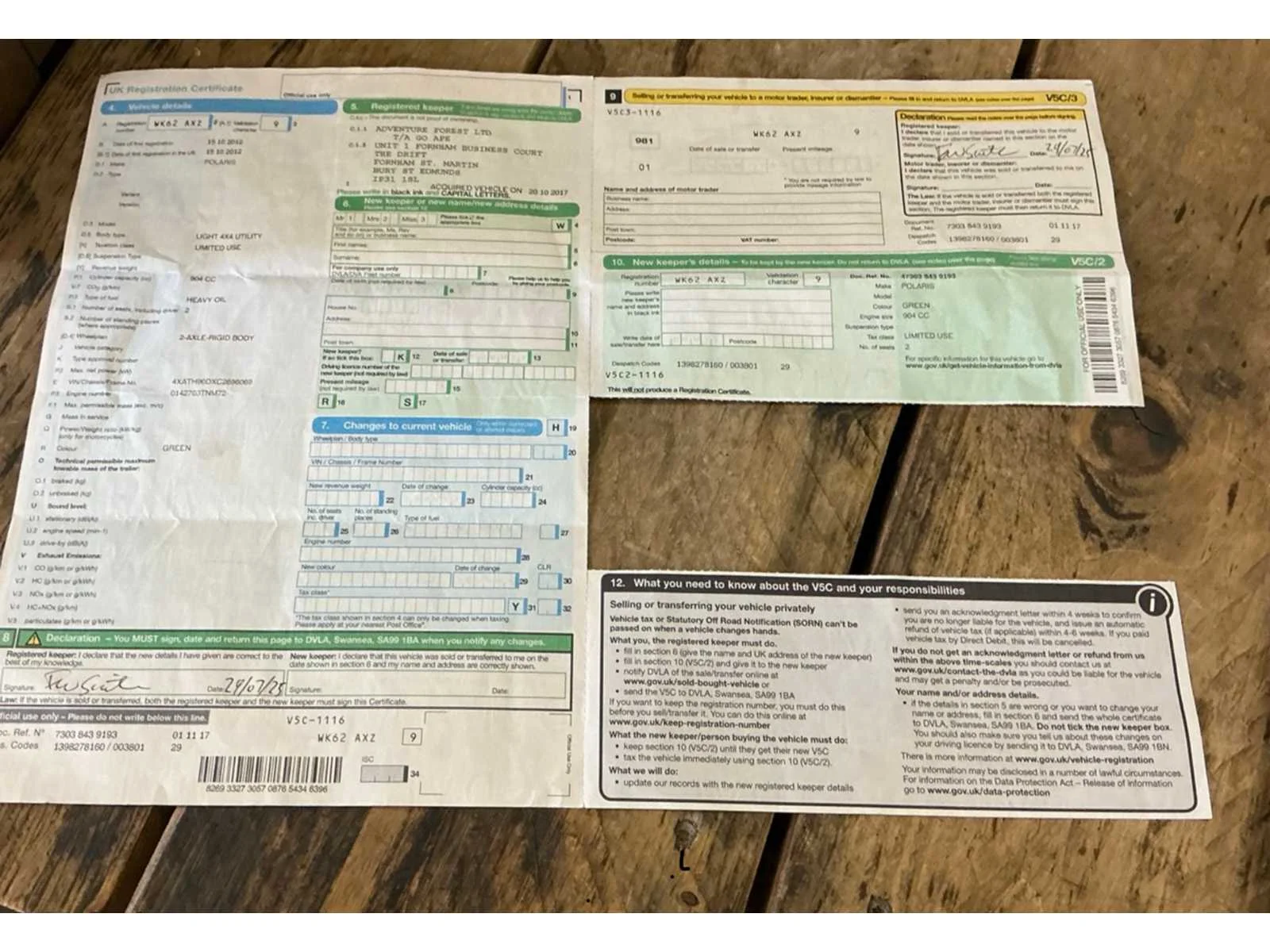 Engelse documenten; startrelais reageert niet Nee Merk: Polaris Type: ATV/VTT Bouwjaar: 2012 Serienummer: 4XATH90DX69 Afgelezen urenstand: 3482 Cabine: true