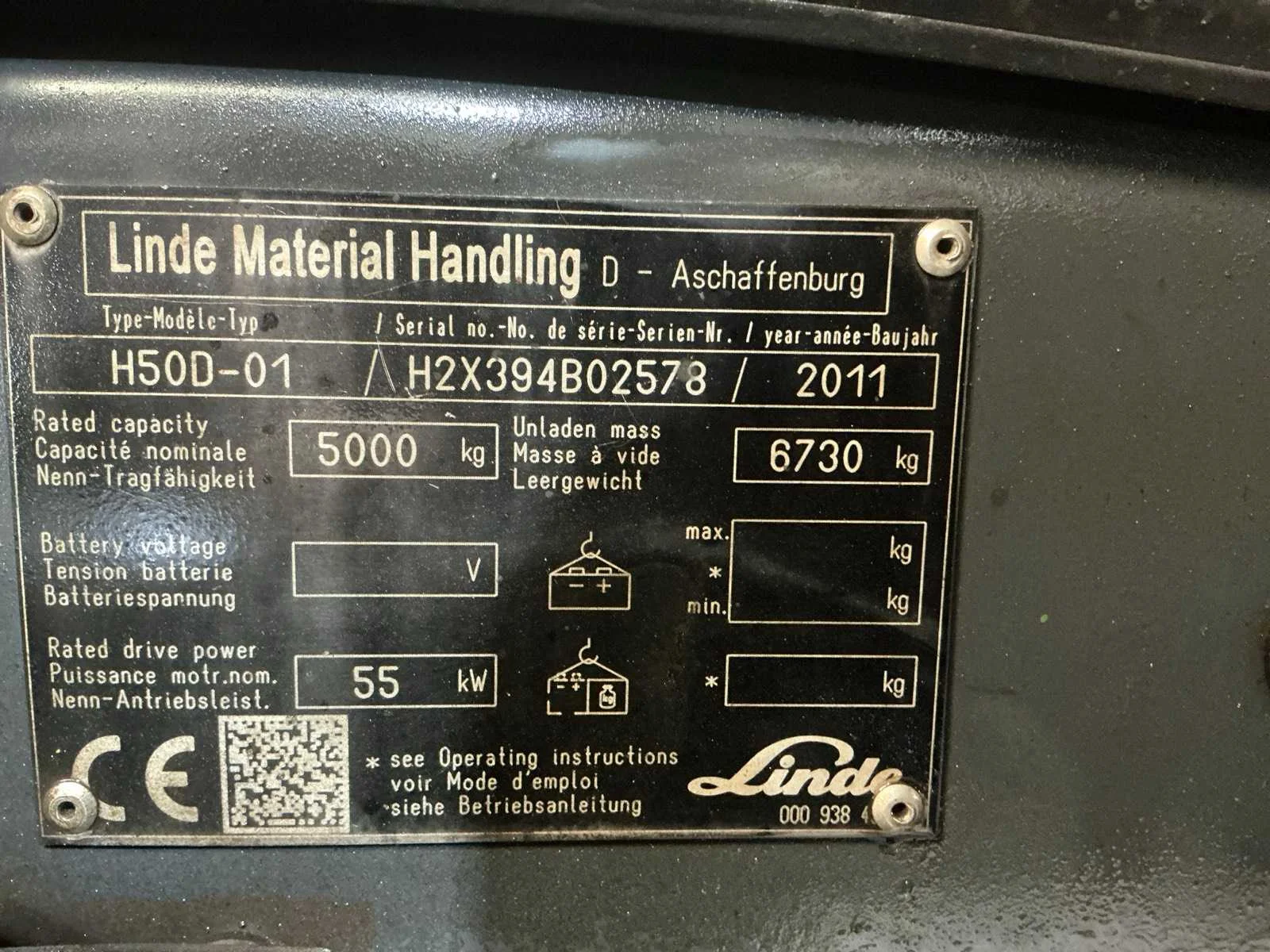 Nee Merk: Linde Type: H50D-01 Bouwjaar: 2011 Serienummer: H2X 394B02578 Brandstof: Diesel Mast: Duplex Soort band: Volrubber banden Aantal wielen: 4 Duplex mast: true Eigen gewicht: 6730kg Hefvermogen: 5000kg Lepellengte: 1400mm Hefhoogte: 4450mm Vol rubber banden: true Totale afmeting L: 3200mm Totale afmeting Breedte: 1450mm Totale afmeting Hoogte: 3050mm Diesel: true