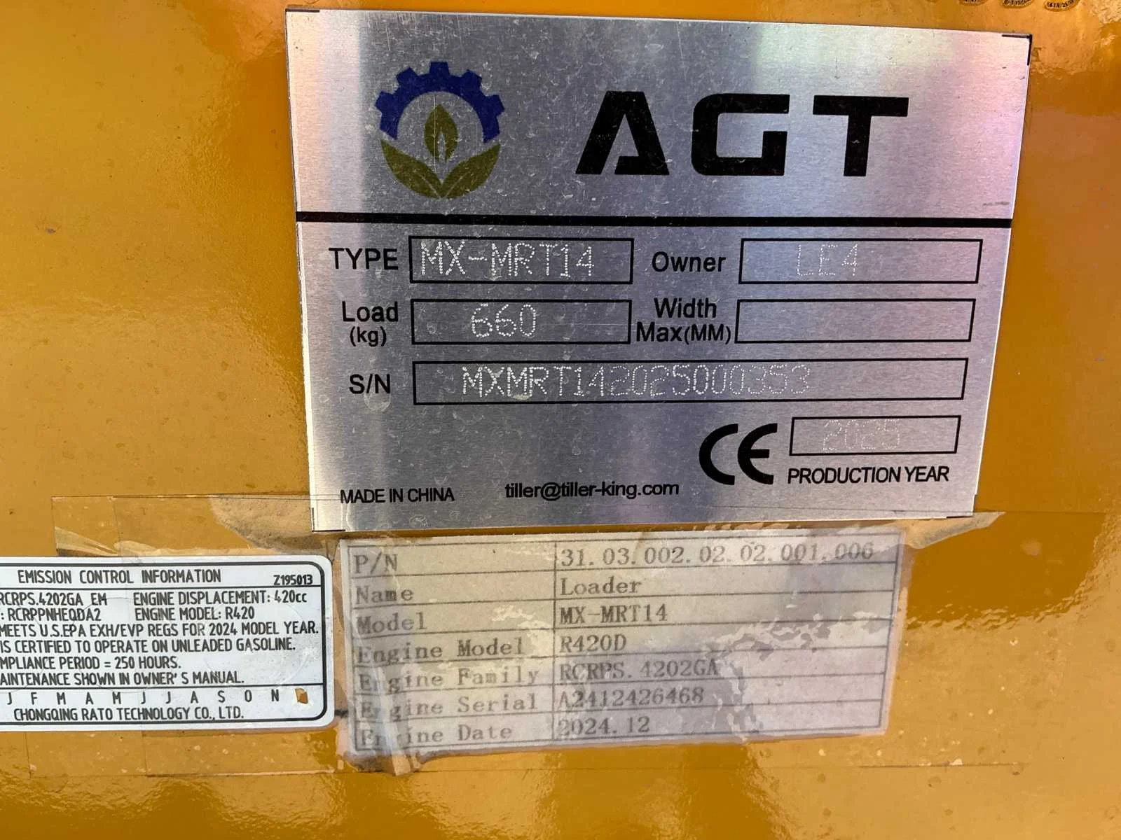 Ongebruikt Nee Merk: AGT Type: MX-MRT14 Bedrijfsgewicht: 660kg Graafbak afm. l: 550mm Graafbak afm. b: 830mm Graafbak afm. h: 380mm Eigen gewicht: 660kg Totale afmeting L: 2200mm Totale afmeting Breedte: 850mm Totale afmeting Hoogte: 1350mm