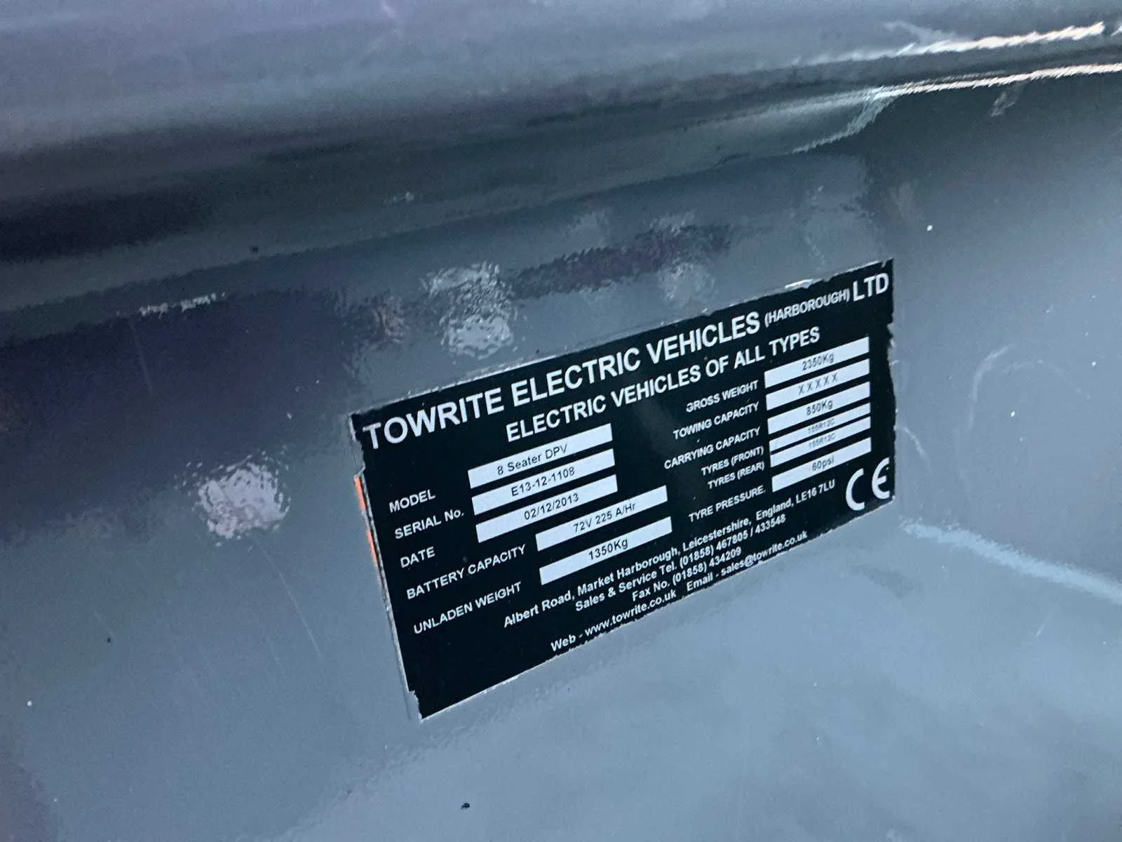 Geen documenten,rijd voor, en achteruit, staat accu matig Nee Merk: Towrite Type: 8 seater bpv Bouwjaar: 2013 Serienummer: E13-12-1108 Eigen gewicht: 1350kg Totale afmeting L: 4100mm Totale afmeting Breedte: 1500mm Totale afmeting Hoogte: 1950mm No self drive export!: true