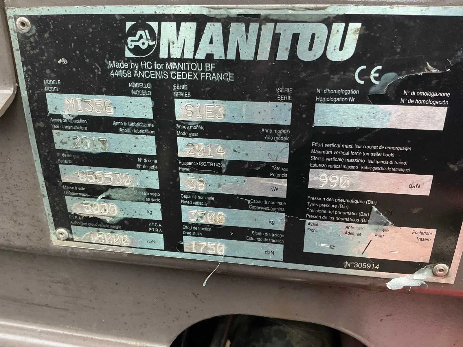 Gastank niet inbegrepen Nee Merk: Manitou Type: MI35G Bouwjaar: 2013 Serienummer: 855530 Brandstof: LPG Mast: Triple Soort band: Volrubber banden Aantal wielen: 4 Afgelezen urenstand: 1197 Free-lift: true Side-shift: true Hydraulisch verstelbare lepels: true Triple mast: true Eigen gewicht: 5000kg Hefvermogen: 3500kg Lepellengte: 1200mm Hefhoogte: 4600mm Vol rubber banden: true Totale afmeting L: 2950mm Totale afmeting Breedte: 1250mm Totale afmeting Hoogte: 2250mm LPG: true