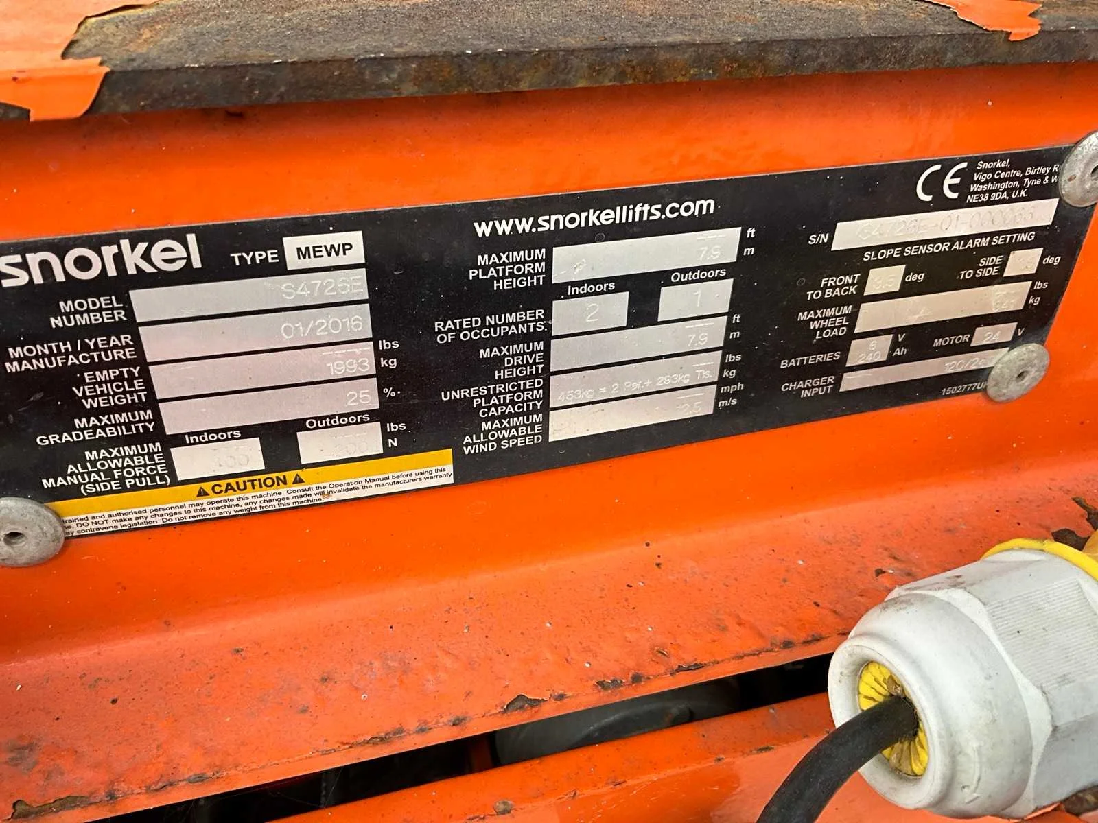 Nee Merk: Snorkel Type: S4726 Bouwjaar: 2016 Serienummer: 000063 Elektrisch: true Eigen gewicht: 1993kg