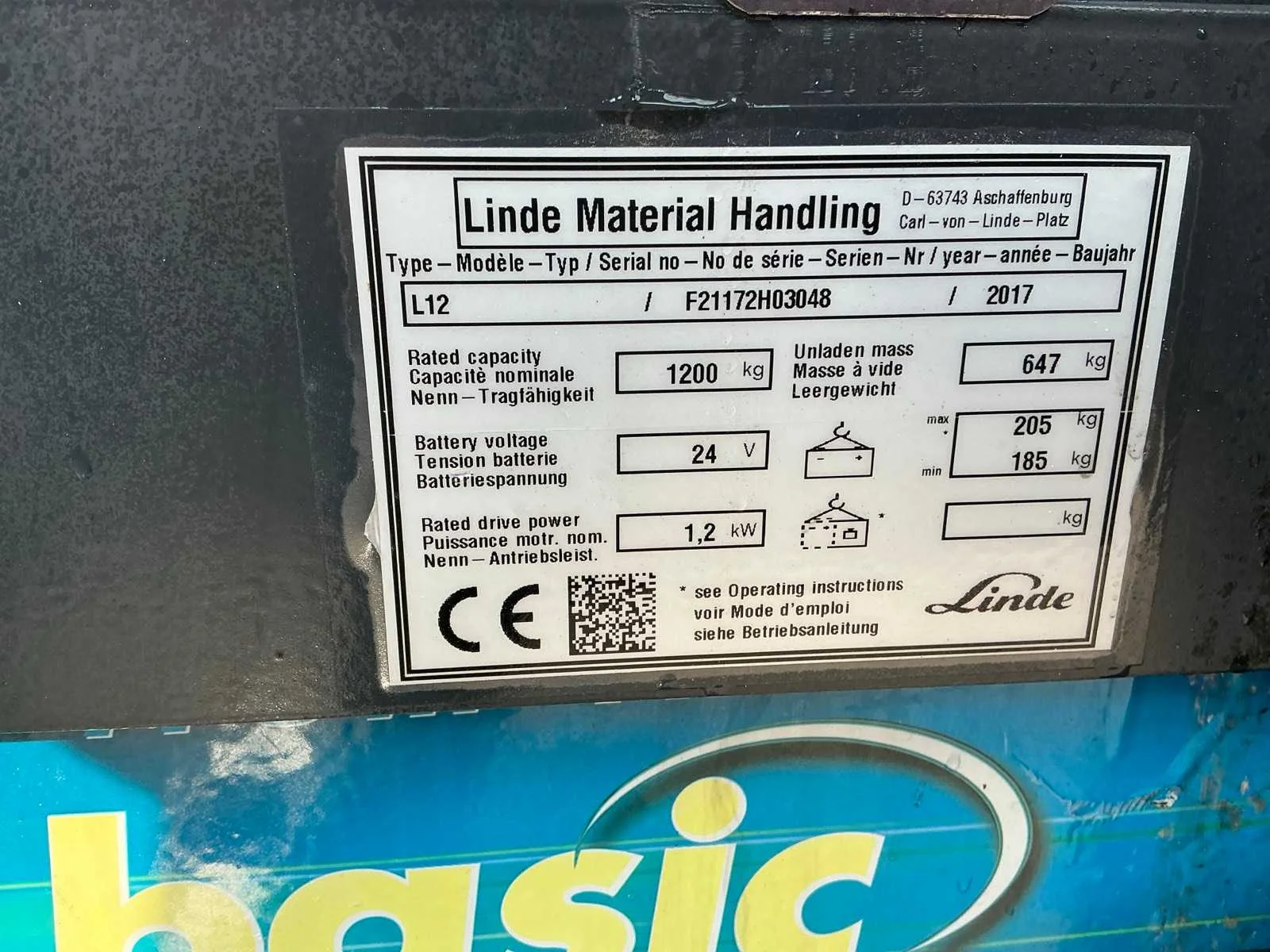 Nee Merk: Linde Type: L12 Bouwjaar: 2017 Serienummer: F21172H048 Hefvermogen: 1200kg Hefhoogte: 3000mm Lepellengte: 1150mm Afgelezen urenstand: 2796 Eigen gewicht: 8530kg Totale afmeting L: 1850mm Totale afmeting Breedte: 820mm Totale afmeting Hoogte: 1950mm Accu lader: true