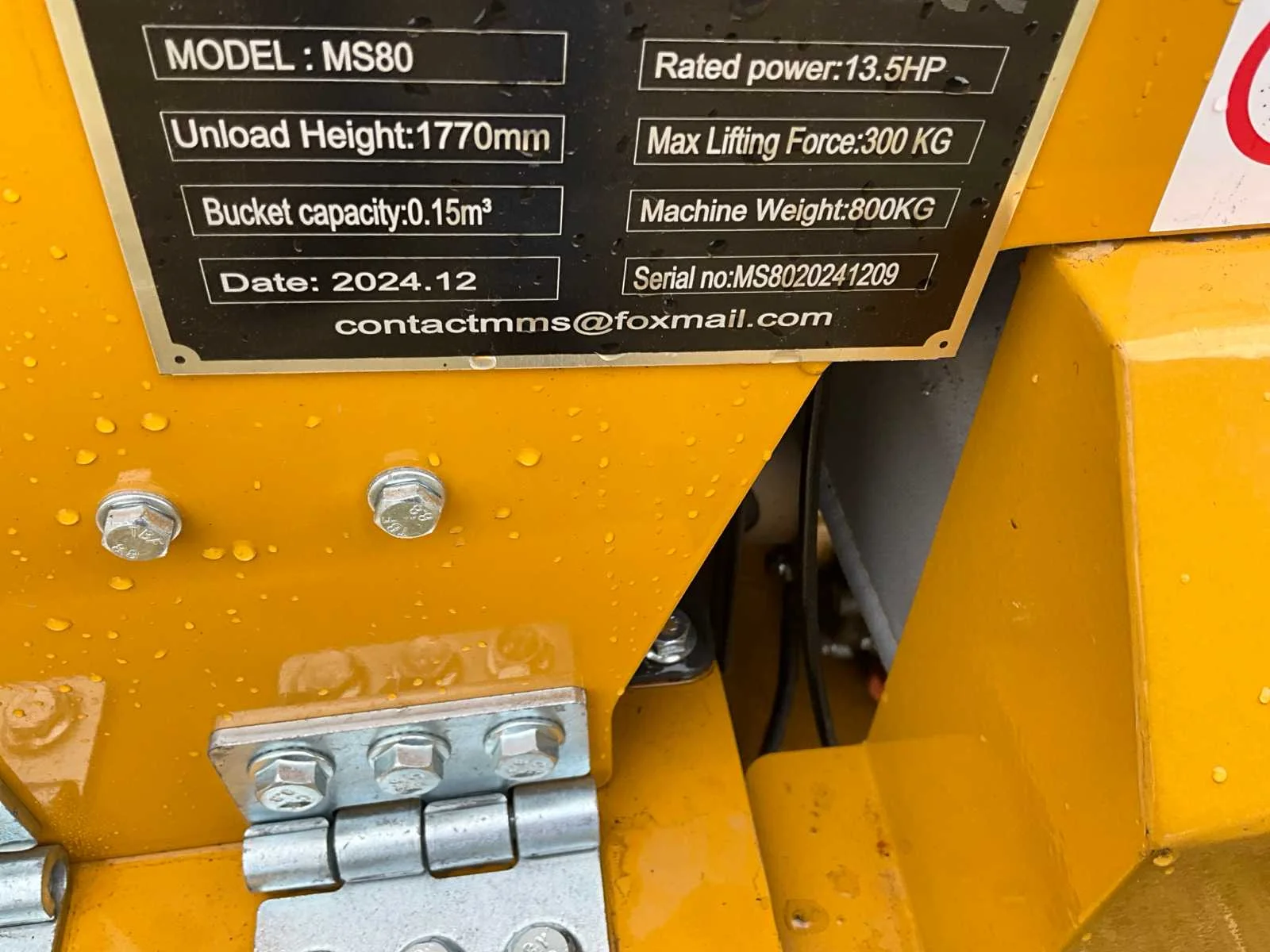 Nee Merk: MS Type: MS80 Bouwjaar: 2024 Serienummer: Ms8020241209 Eigen gewicht: 800kg