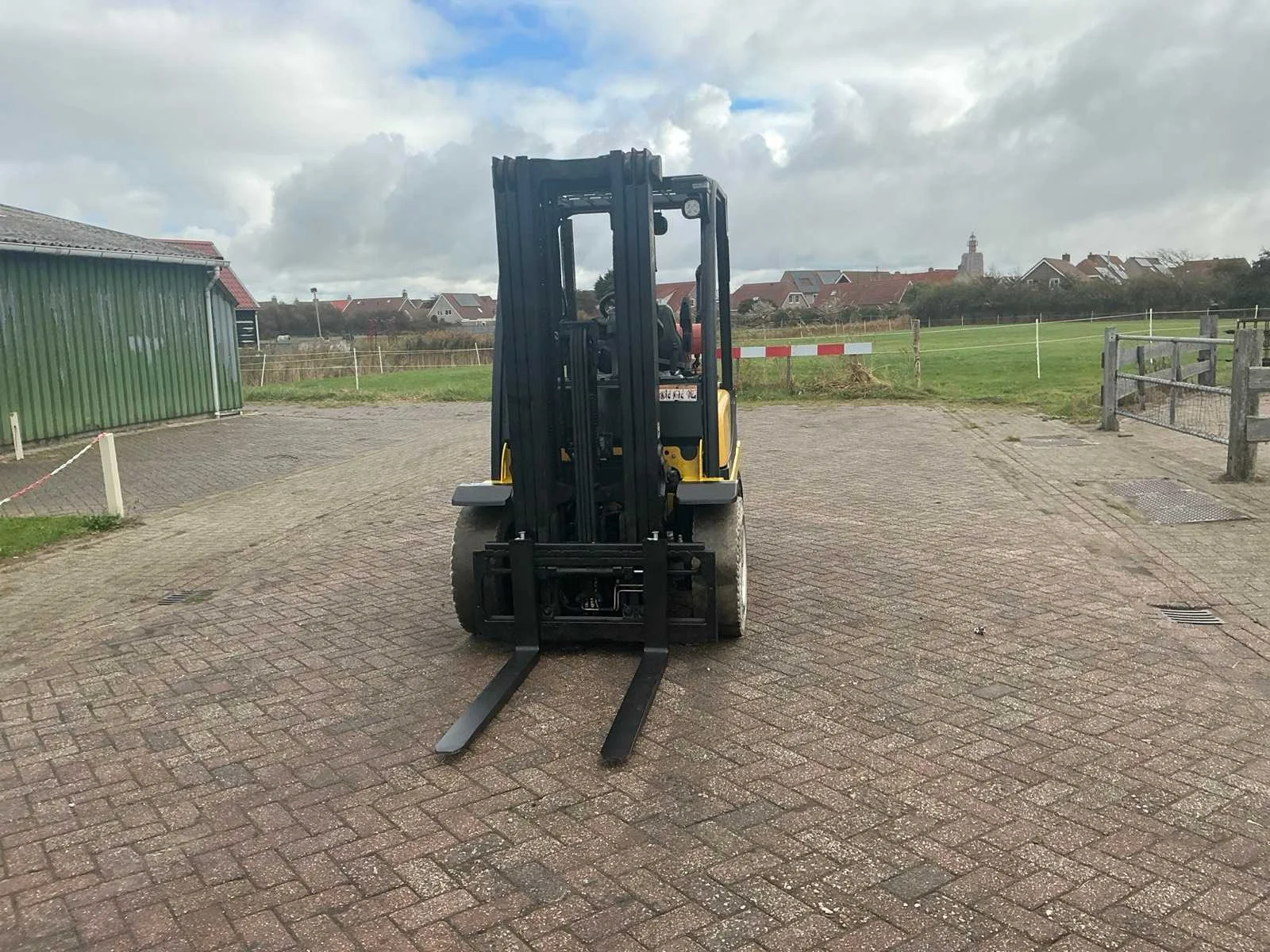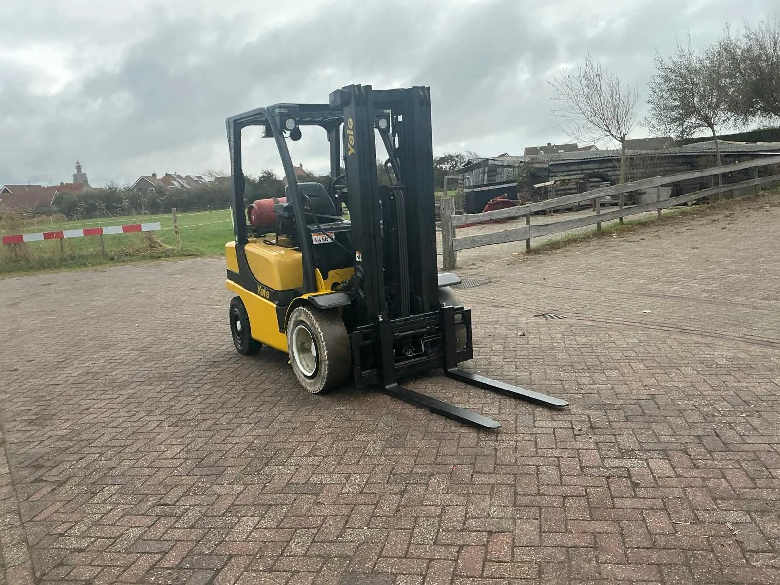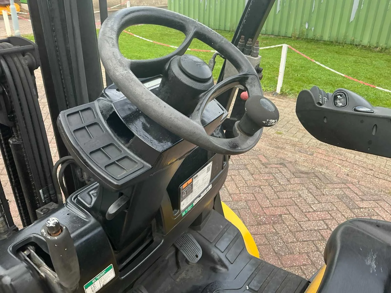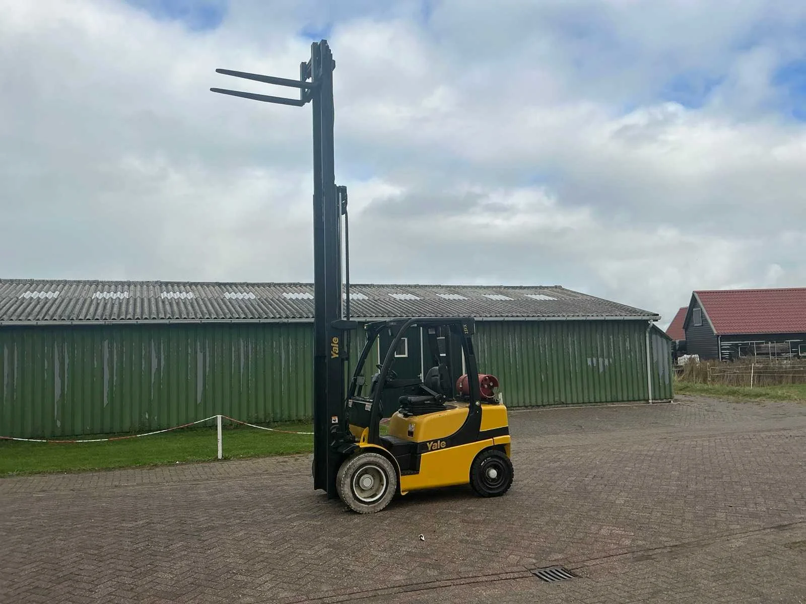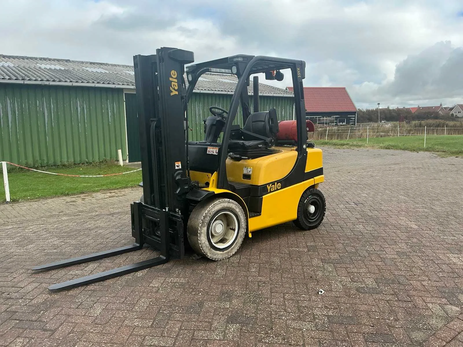 Gastank niet inbegrepen Nee Merk: Yale Type: GLP25VXE Bouwjaar: 2017 Serienummer: D875B03889R Brandstof: LPG Mast: Triple Soort band: Volrubber banden Aantal wielen: 4 Free-lift: true Side-shift: true Duplex mast: true Triple mast: true Eigen gewicht: 4840kg Hefvermogen: 2500kg Lepellengte: 1100mm Hefhoogte: 4950mm Vol rubber banden: true Totale afmeting L: 2650mm Totale afmeting Breedte: 130mm Totale afmeting Hoogte: 2150mm LPG: true