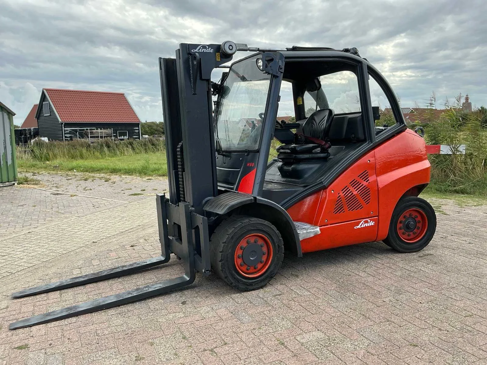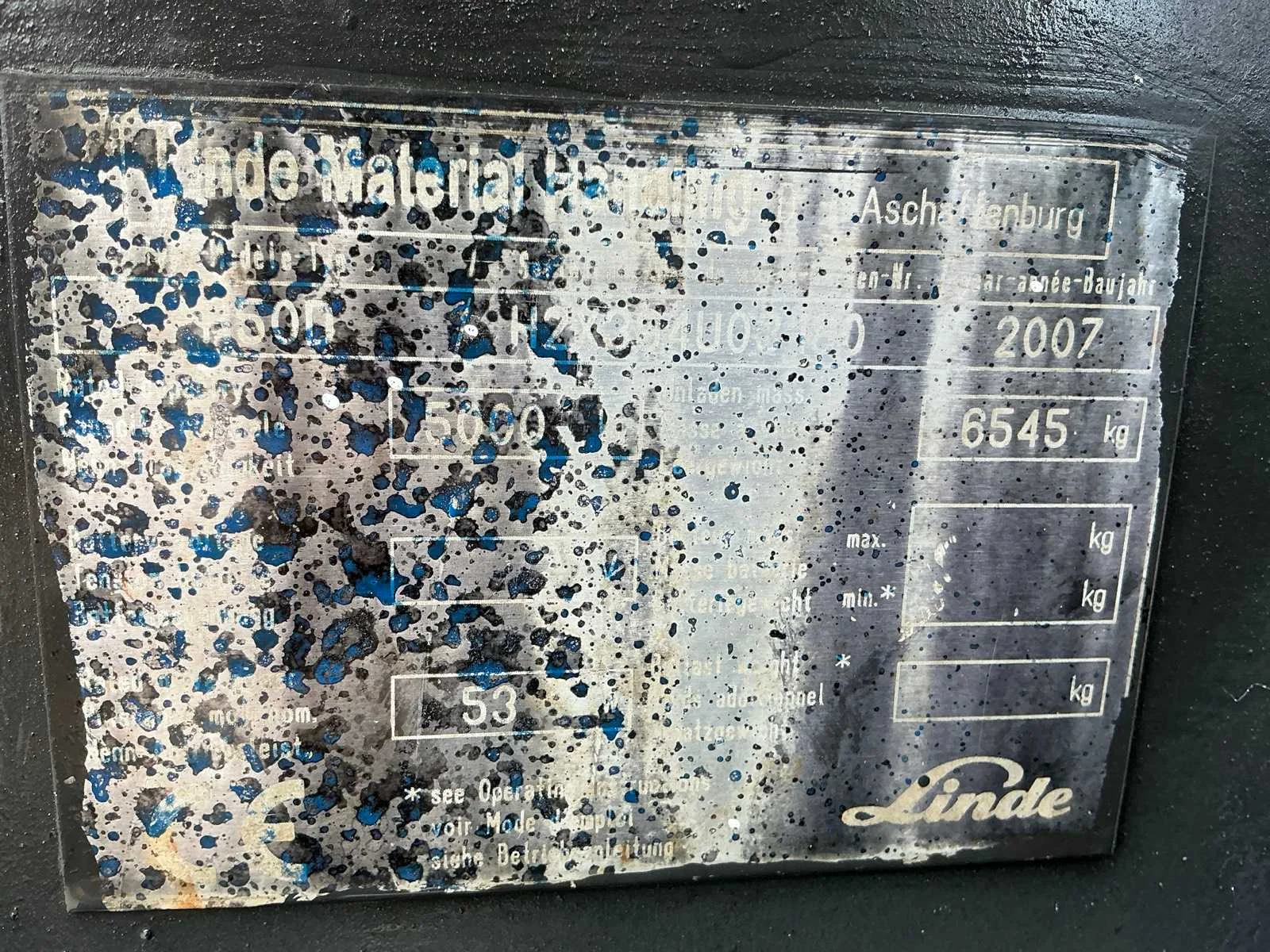 Nee Merk: Linde Type: H50D Serienummer: H2X294U03180 Brandstof: Diesel Mast: Triple Soort band: Volrubber banden Aantal wielen: 4 Free-lift: true Triple mast: true Eigen gewicht: 6545kg Hefvermogen: 5000kg Lepellengte: 1400mm Hefhoogte: 4000mm Vol rubber banden: true Totale afmeting Breedte: 1450mm Totale afmeting Hoogte: 2150mm Diesel: true