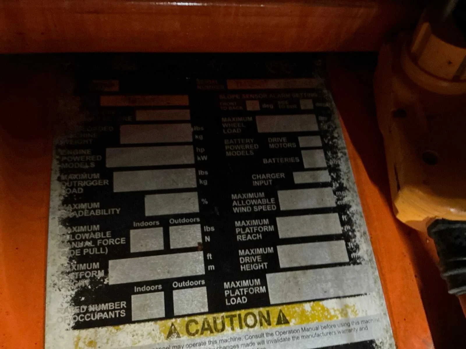 Geen sleutel,niet getest Nee Merk: Snorkel Type: TM 12 Bouwjaar: 2018 Serienummer: 01180902 Elektrisch: true Telescoop hoogwerker: true Masthoogwerker: true Werkhoogte: 5650mm Horizontale rijkwijdte: 500mm Plateau afm. l: 960mm Plateau afm. b: 740mm Platform capaciteit: 227kg Accu lader: true Eigen gewicht: 830kg Totale afmeting L: 1350mm Totale afmeting Breedte: 760mm Totale afmeting Hoogte: 1620mm
