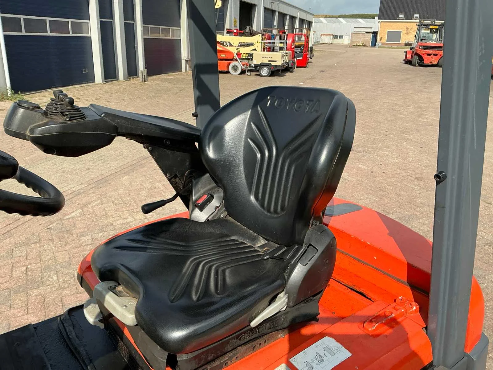 Nee Merk: Toyota Type: 7FBMF16 Bouwjaar: 2009 Serienummer: 14435 Brandstof: elektriciteit Kenteken: T-60-BZJ Mast: Duplex Soort band: Volrubber banden Aantal wielen: 4 Afgelezen urenstand: 2976 Duplex mast: true Eigen gewicht: 3648kg Hefvermogen: 1600kg Lepellengte: 1100mm Hefhoogte: 3300mm Vol rubber banden: true Totale afmeting L: 2200mm Totale afmeting Breedte: 1150mm Totale afmeting Hoogte: 2200mm