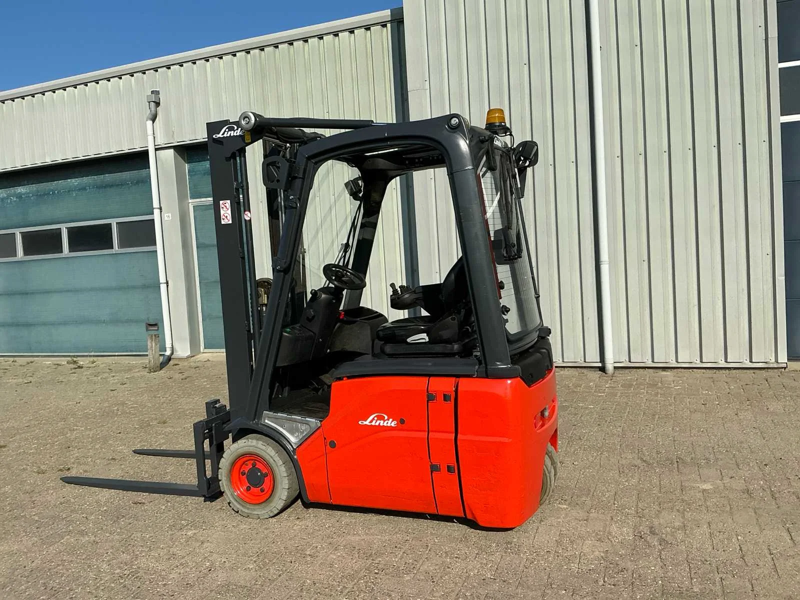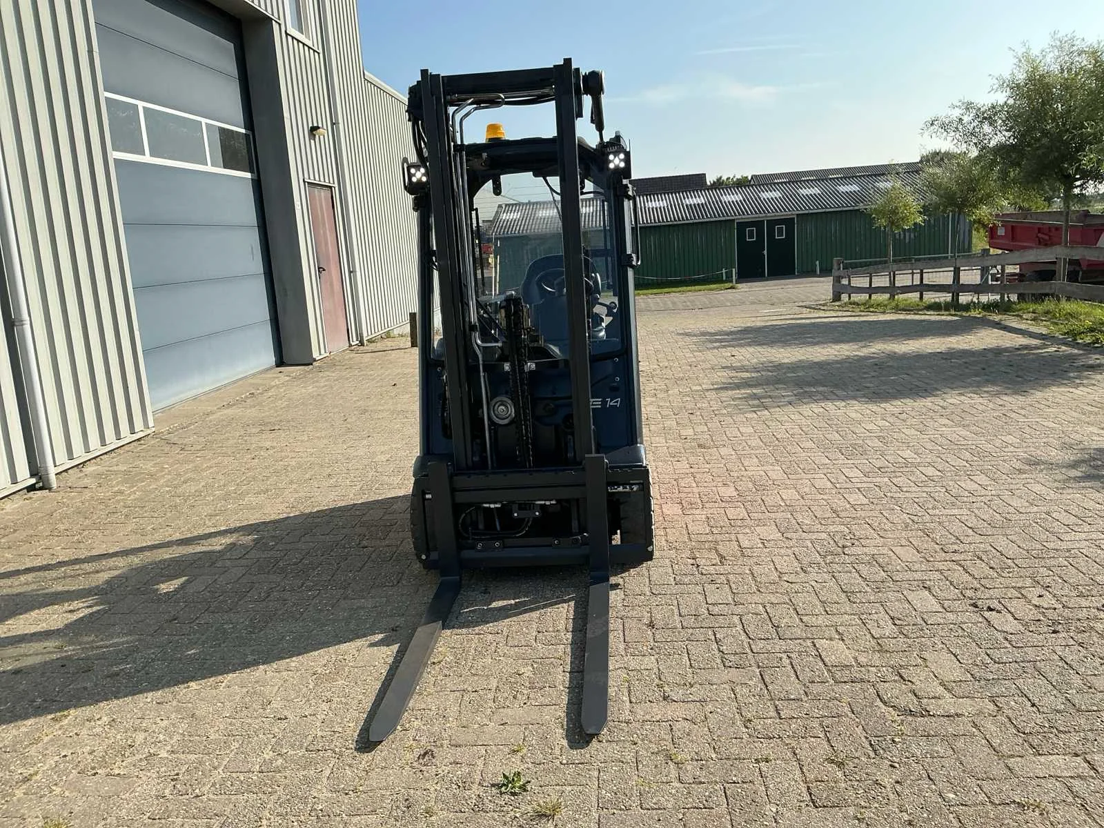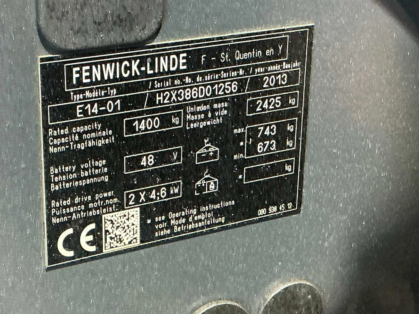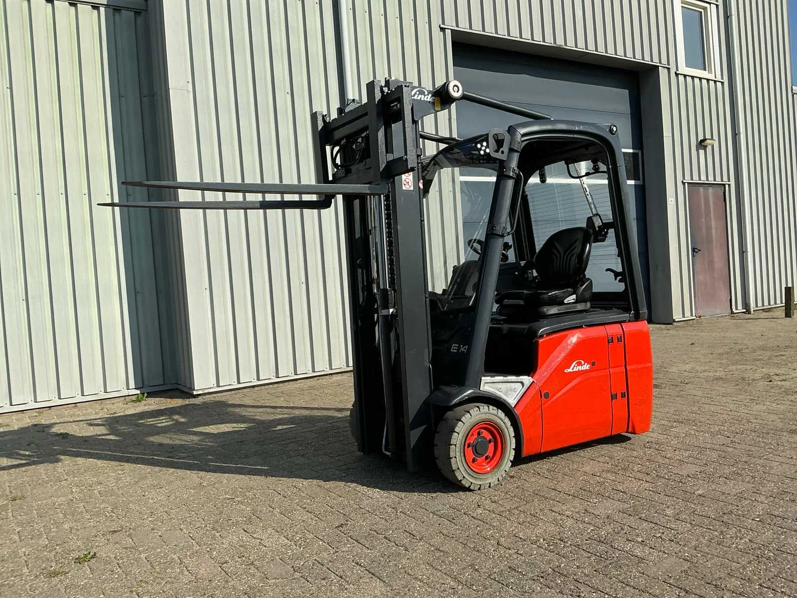 Nee Merk: Linde Type: E14-01 Bouwjaar: 2013 Serienummer: H2X386D01256 Brandstof: Elektrisch Mast: Duplex Soort band: Volrubber banden Aantal wielen: 3 Afgelezen urenstand: 8639 Free-lift: true Side-shift: true Duplex mast: true Eigen gewicht: 3416kg Hefvermogen: 1400kg Lepellengte: 1200mm Hefhoogte: 3150mm Vol rubber banden: true Totale afmeting L: 1900mm Totale afmeting Breedte: 1050mm Totale afmeting Hoogte: 2012mm