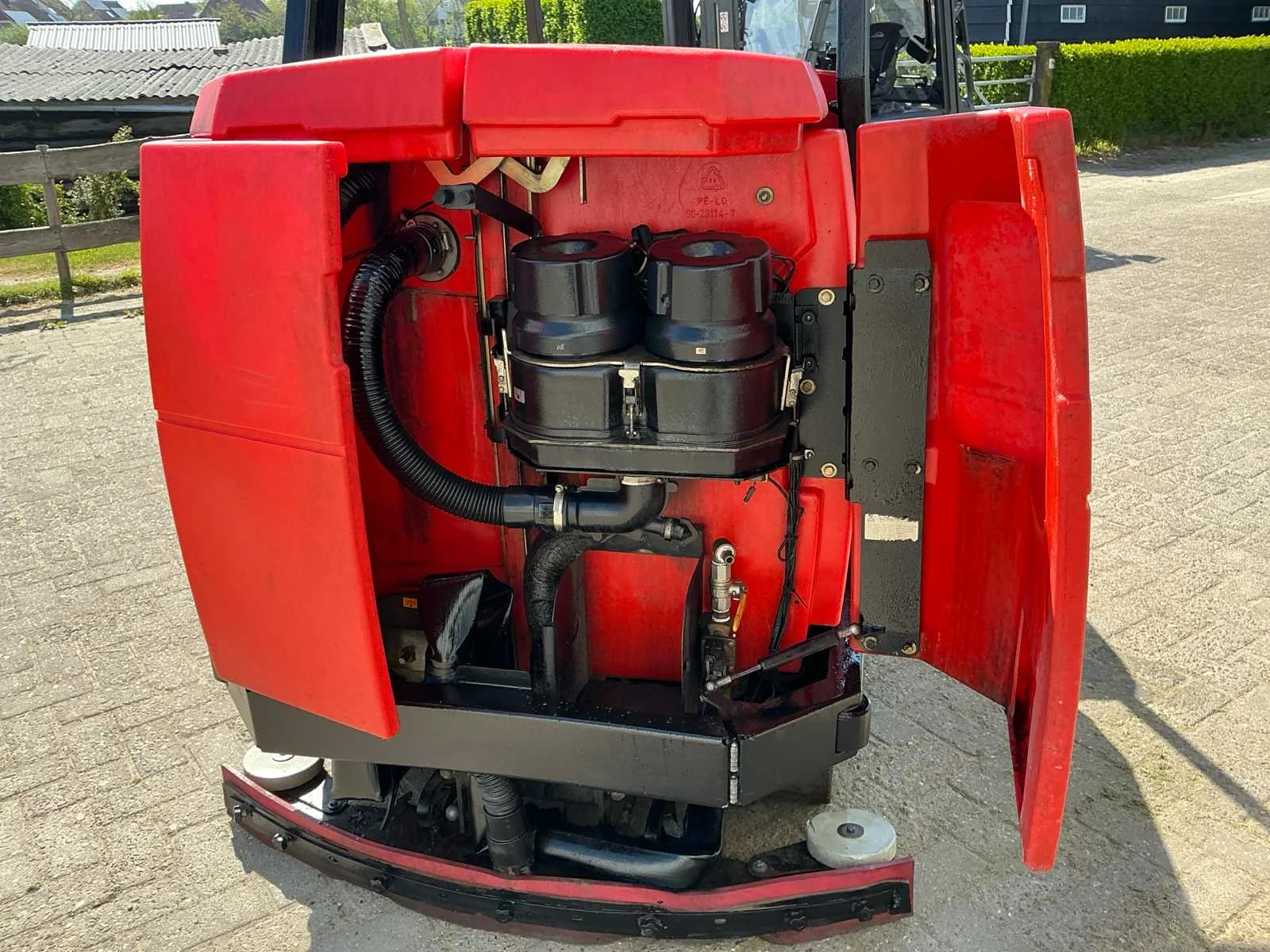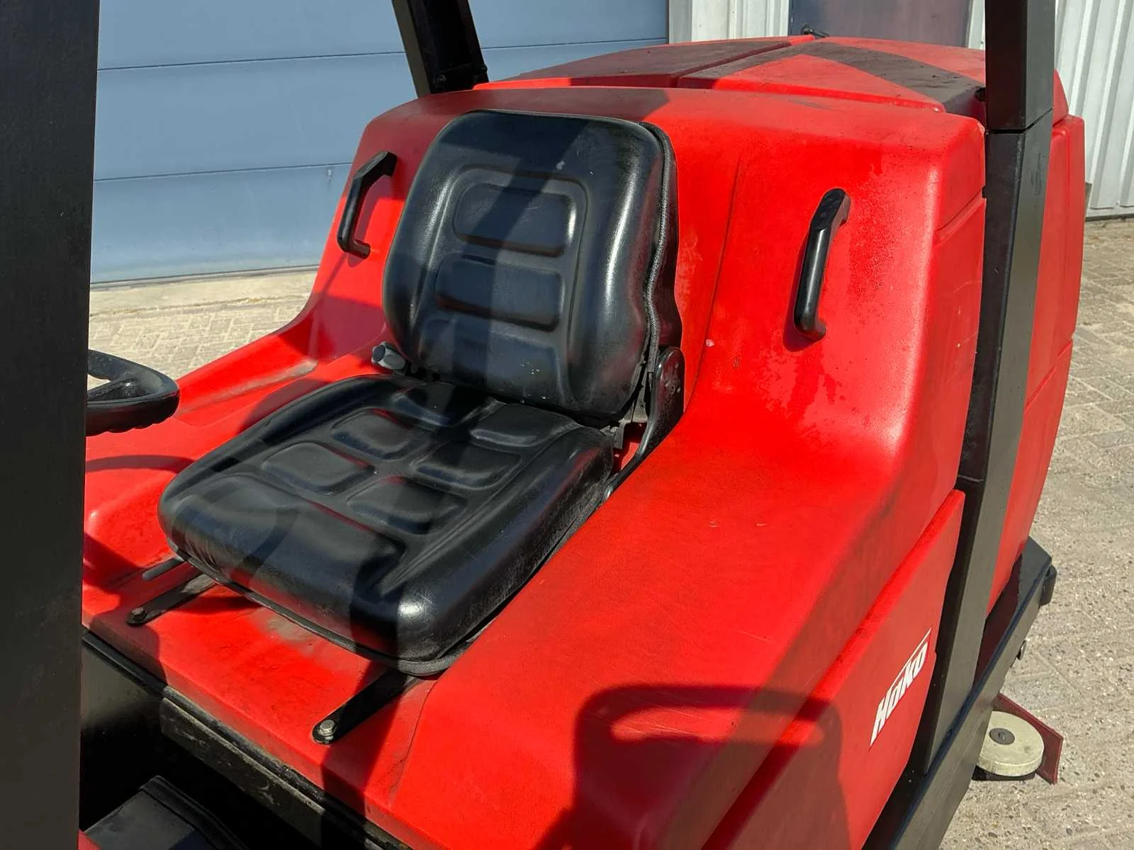 Accu leeg, niet getest Nee Merk: Hako Type: Hakomatic B1100 Serienummer: 7580022-0745-6 Afgelezen urenstand: 3511 Elektrisch aangedreven: true Brandstof: Electrisch Vermogen: 4.4kW Eigen gewicht: 2100kg Totale afmeting L: 2500mm Totale afmeting Breedte: 1200mm Totale afmeting Hoogte: 1900mm