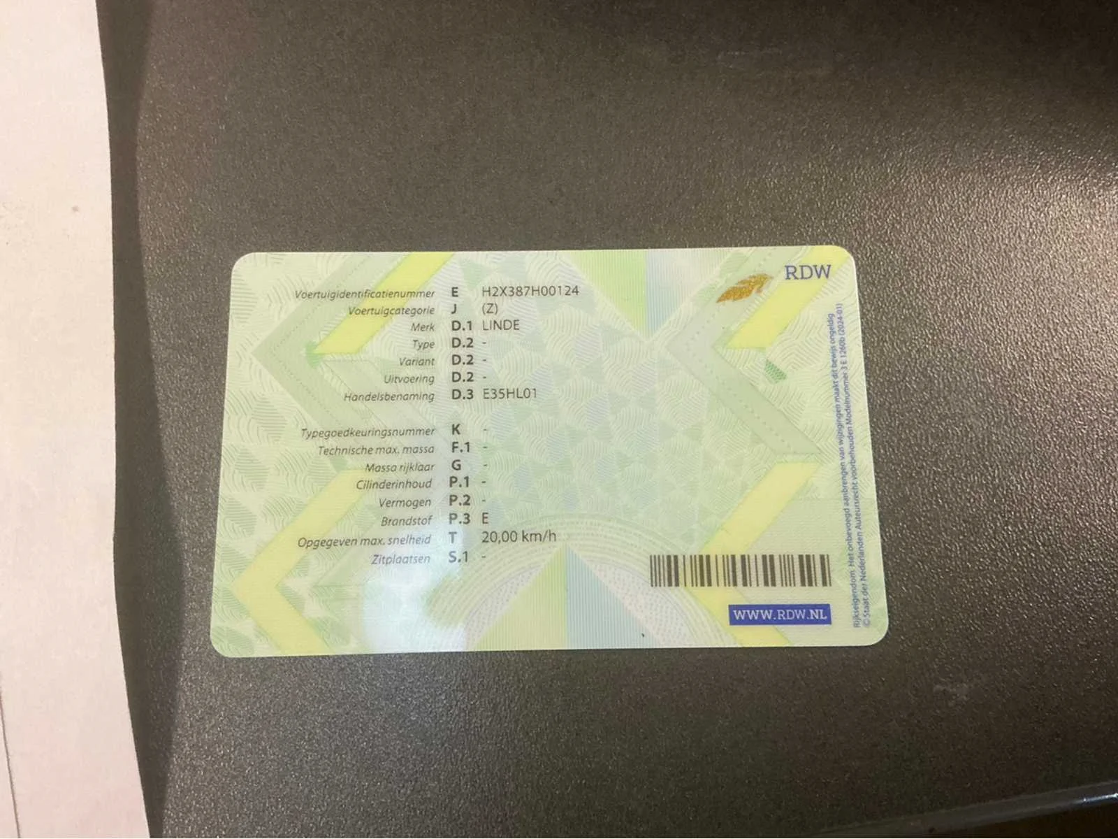 Kenteken TVX-94-L Nee Merk: Linde Type: E35HL-01 Bouwjaar: 2017 Serienummer: H2X387H00124 Brandstof: Elektrisch Mast: Duplex Soort band: Volrubber banden Aantal wielen: 4 Side-shift: true Duplex mast: true Eigen gewicht: 4115kg Hefvermogen: 3500kg Lepellengte: 1200mm Hefhoogte: 4400mm Vol rubber banden: true Totale afmeting L: 2500mm Totale afmeting Breedte: 1300mm Totale afmeting Hoogte: 2850mm