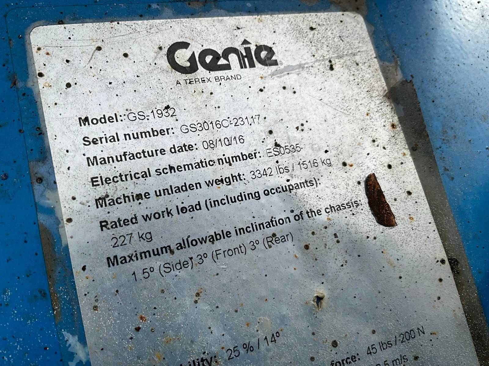 Nee Merk: Genie Type: GS-1932 Bouwjaar: 2016 Serienummer: 23117 Elektrisch: true Schaarhoogwerker: true Werkhoogte: 7800mm Plateau afm. l: 1640mm Plateau afm. b: 745mm Platform capaciteit: 227kg Accu lader: true Eigen gewicht: 1516kg Totale afmeting L: 1850mm Totale afmeting Breedte: 8250mm Totale afmeting Hoogte: 2120mm