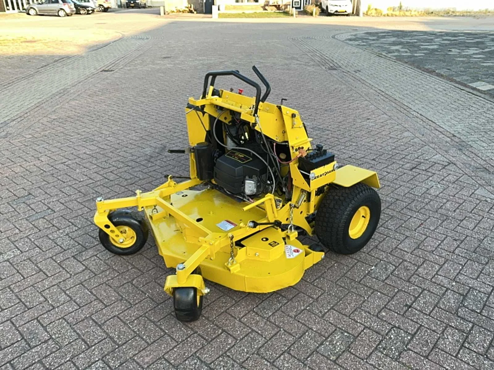 Ter reparatie Nee Merk: GREAT DANE Type: Stand on lawnmower Serienummer: TCSE17W010049 Zelfrijdend: true Brandstof: Benzine Vermogen (pk): 17 Totale afmeting L: 1300cm Totale afmeting Breedte: 1500cm Totale afmeting Hoogte: 12500cm