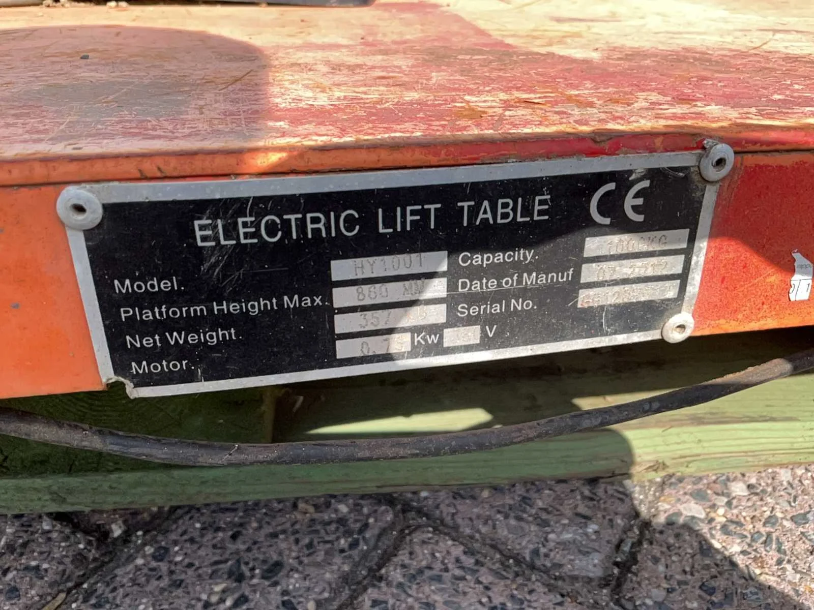 Niet getest Nee Merk: Low profile Type: HY1001 Plateau afm. l: 1450mm Plateau afm. b: 1150mm Elektrisch bediend: true Capaciteit.: 1000kg Hefhoogte: 860mm Aansluiting: 380V