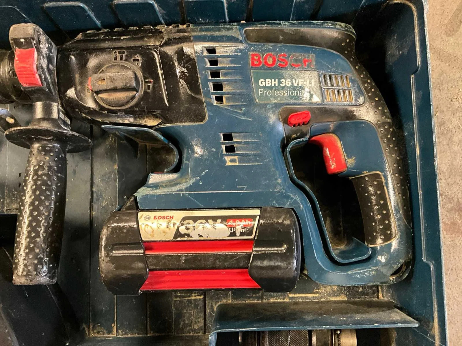 Nee Merk: Bosch Type: GBH 36 VF-Li Accuspanning: 36V Aantal accu's: 1 Accu lader: true Klopboormachine: true Boorhamer: true Boor-/breekhamer: true SDS fitting: true Met koffer: true