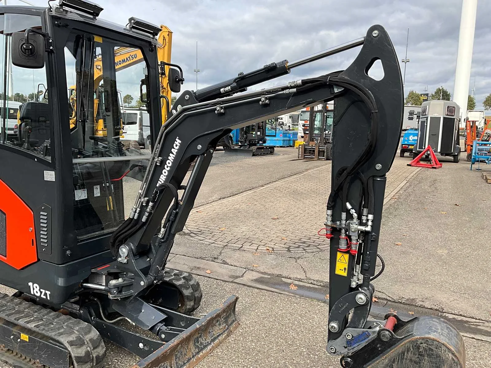 Hydraulische snelwissel, banaanbak 300mm, 2x extra hydraulische functie, zwenkgiek, schuifblad met verbreders, verstelbaar rijwerk, 2e rijsnelheid, LED verlichting, radio, kachel Nee Merk: Eurocomach Type: 18ZT Bouwjaar: 2022 Serienummer: 00159 Merk motor: Yanmar 3TNV70 Motorvermogen (kW): 12kW Aantal cilinders: 3 Brandstof: Diesel Bedrijfsgewicht: 1940kg Inclusief graafbak: Yes Graafbak afm. b: 300mm Rups breedte: 230mm Afgelezen urenstand: 165 Totale afmeting L: 3200mm Totale afmeting Breedte: 1100mm Totale afmeting Hoogte: 2500mm