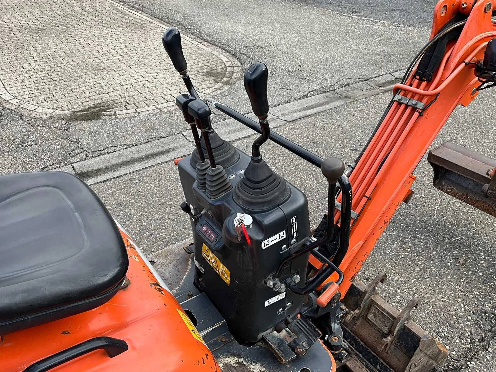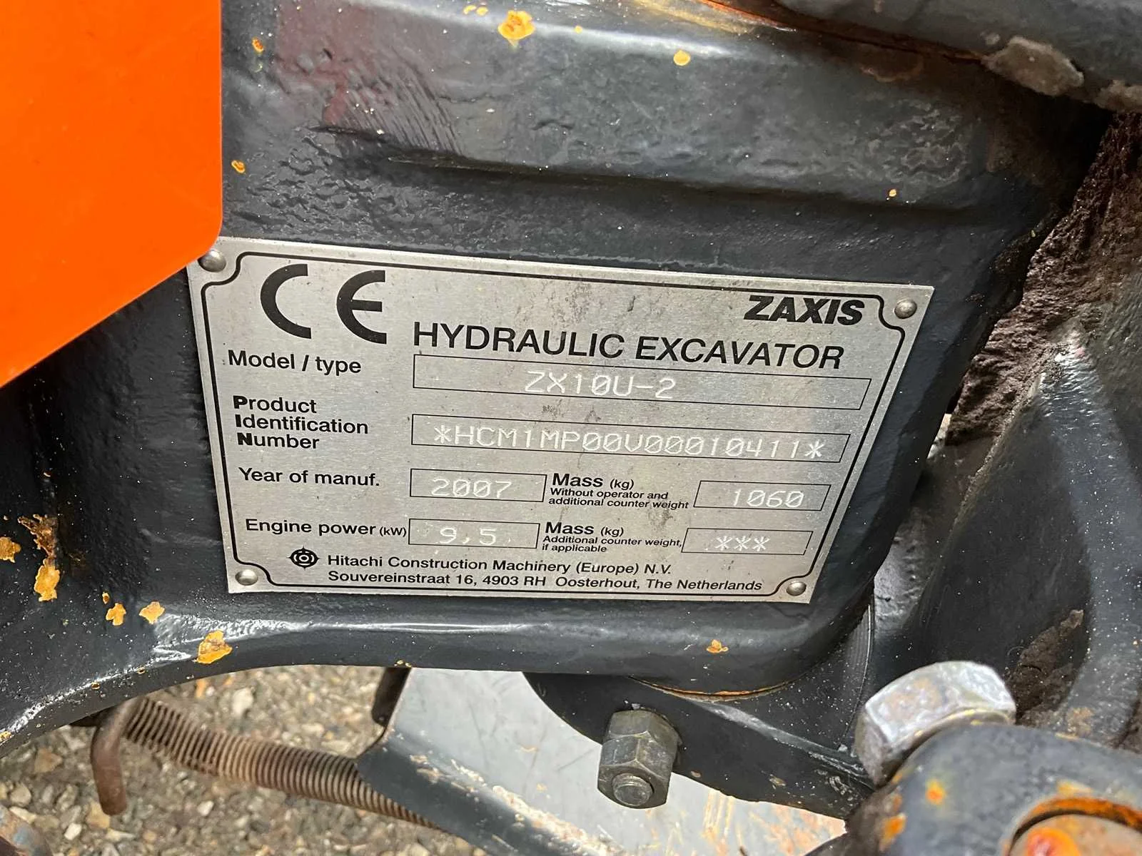 CW00 hydraulische snelwissel, CW00 slotenbak 1000mm, CW00 dieplepel 400mm, CW00 banaanbak 220mm, extra hydraulische functie voorbereid, zwenkgiek, schuifblad met verbreders, verstelbaar rijwerk Nee Merk: Hitachi Type: ZX10U-2 Bouwjaar: 2007 Serienummer: HCM1MP00V00010411 Merk motor: Yanmar 3TNV70 Motorvermogen (kW): 9.5kW Brandstof: Diesel Bedrijfsgewicht: 1060kg Inclusief graafbak: Yes Rups breedte: 180mm Afgelezen urenstand: 3958 Totale afmeting L: 3200mm Totale afmeting Breedte: 800mm Totale afmeting Hoogte: 1600mm